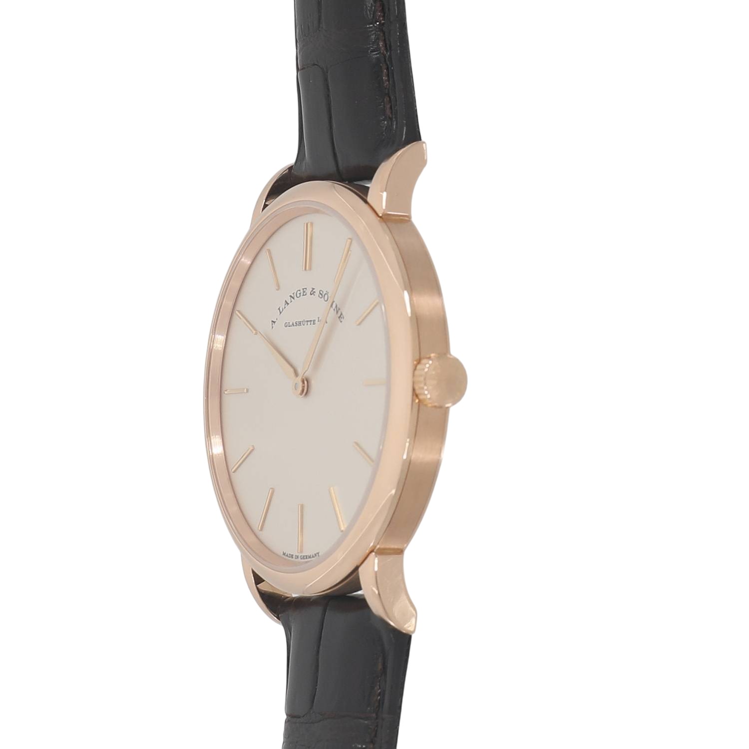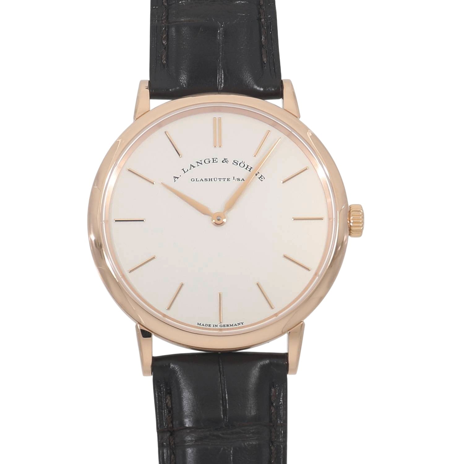 | モデルについて / Features | ドイツを代表する時計ブランドであるランゲ&ゾーネ。1994年に復興を遂げた際に4つのコレクションが発表されましたが、サクソニアもそのうちの1つのモデルとなります。ランゲ創業の地でもあるザクセン州の地名をラテン語読みしたのがサクソニアです。フラッハとはドイツ語で"薄い"や"平ら"という意味を持ち、その名の通りケースは6.2ミリと薄手に仕上がっています。時分針のみと非常にシンプルな機能なデザインは、気品に溢れるエレガントなドレスウォッチです。ケースバックはスケルトン式となっており、ドイツブランドらしい丁寧な仕上げを施した緻密な手巻き式ムーブメントを堪能する事が出来ます。 |