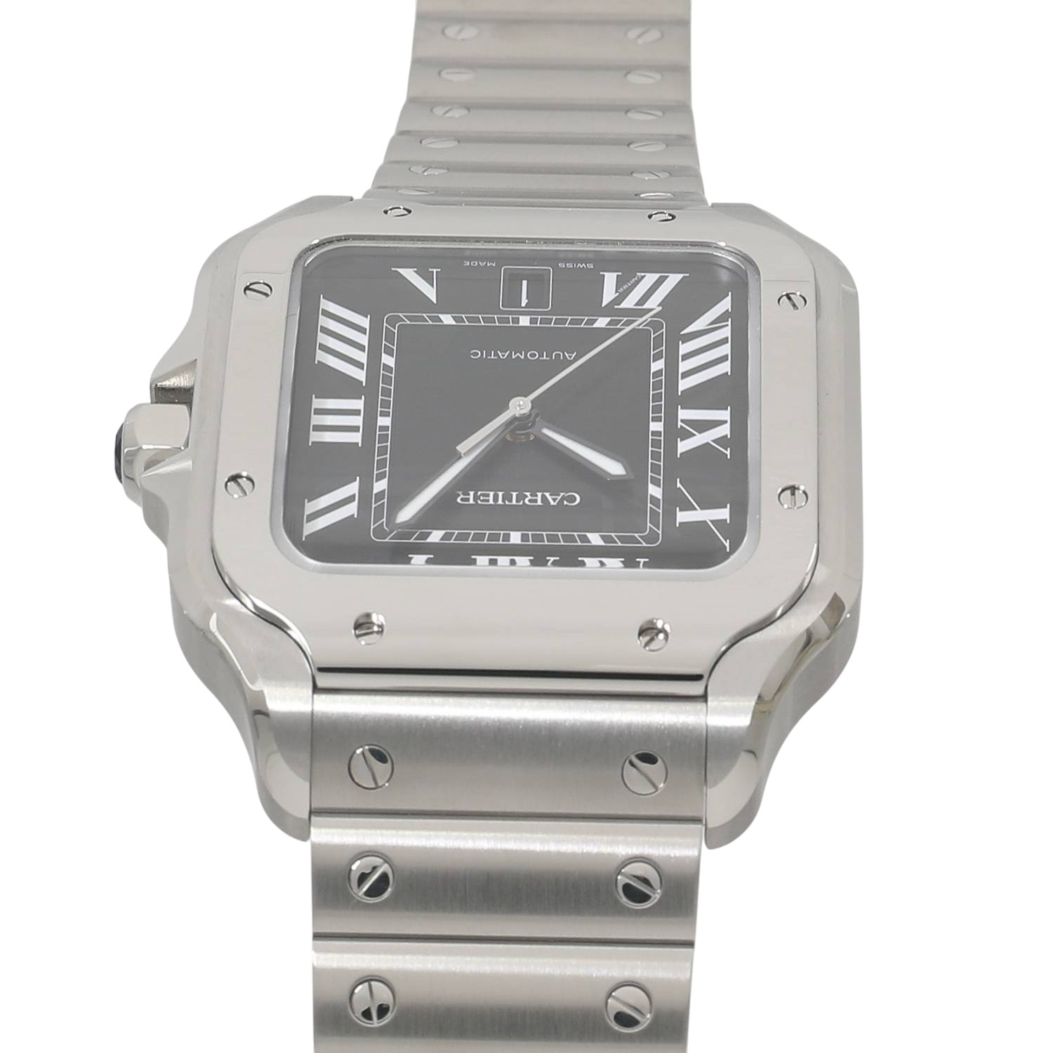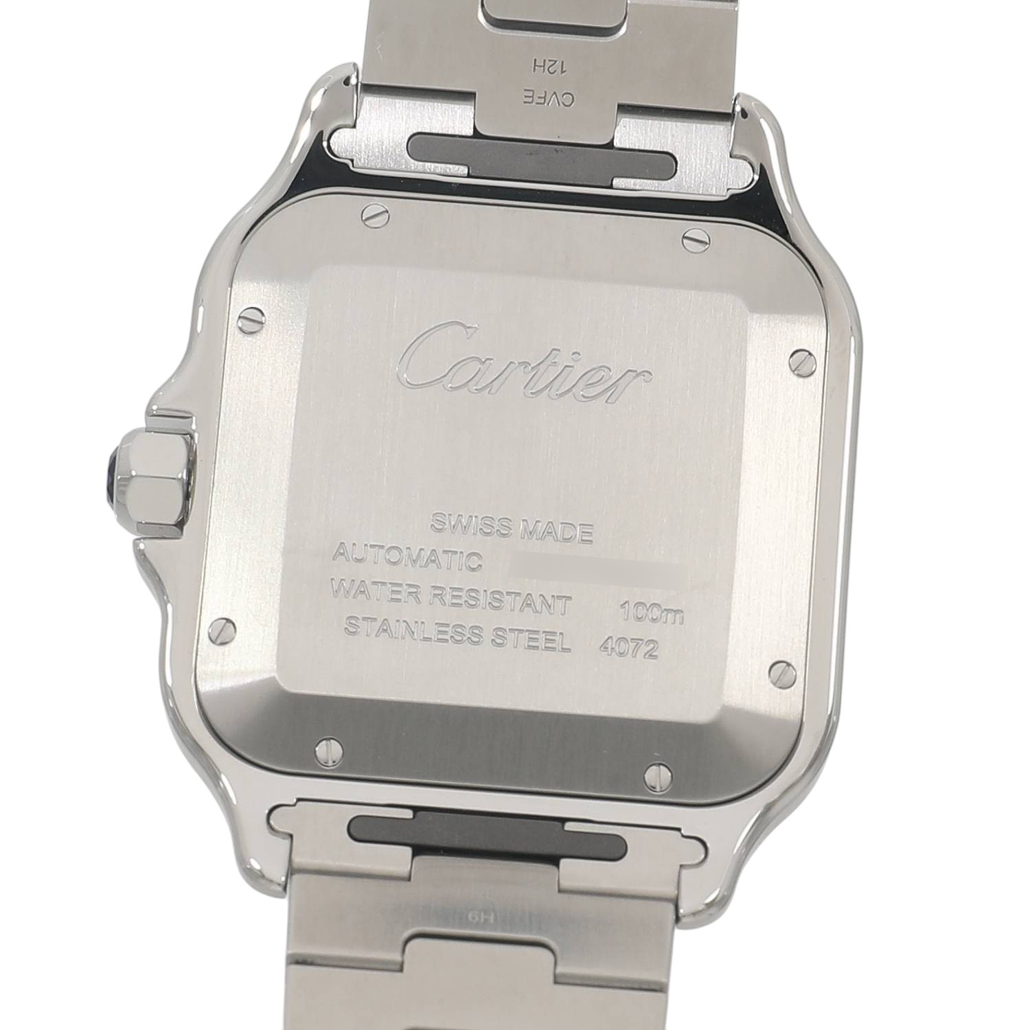 | モデルについて / Features | 2025年の新作 カルティエの創業者であるルイ・カルティエが、友人のブラジル人飛行士であるサントス・デュモンの依頼を受け、1904年に生み出したカルティエのアイコニックピースである”サントス・ウォッチ”。自社キャリバー1847MCを搭載し、2018年に発表された新型サントスになります。ブレスレットはクイックスイッチにより簡単に着脱ができ、シーンや気分によってレザーストラップへの交換が可能です。またブレスレットのサイズ調整もスマートリンク調整システムにより、容易にコマの着け外しが可能になりました。 |