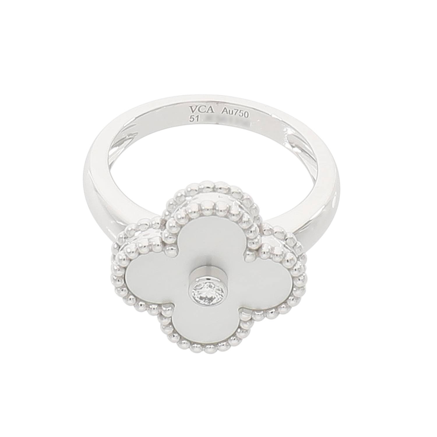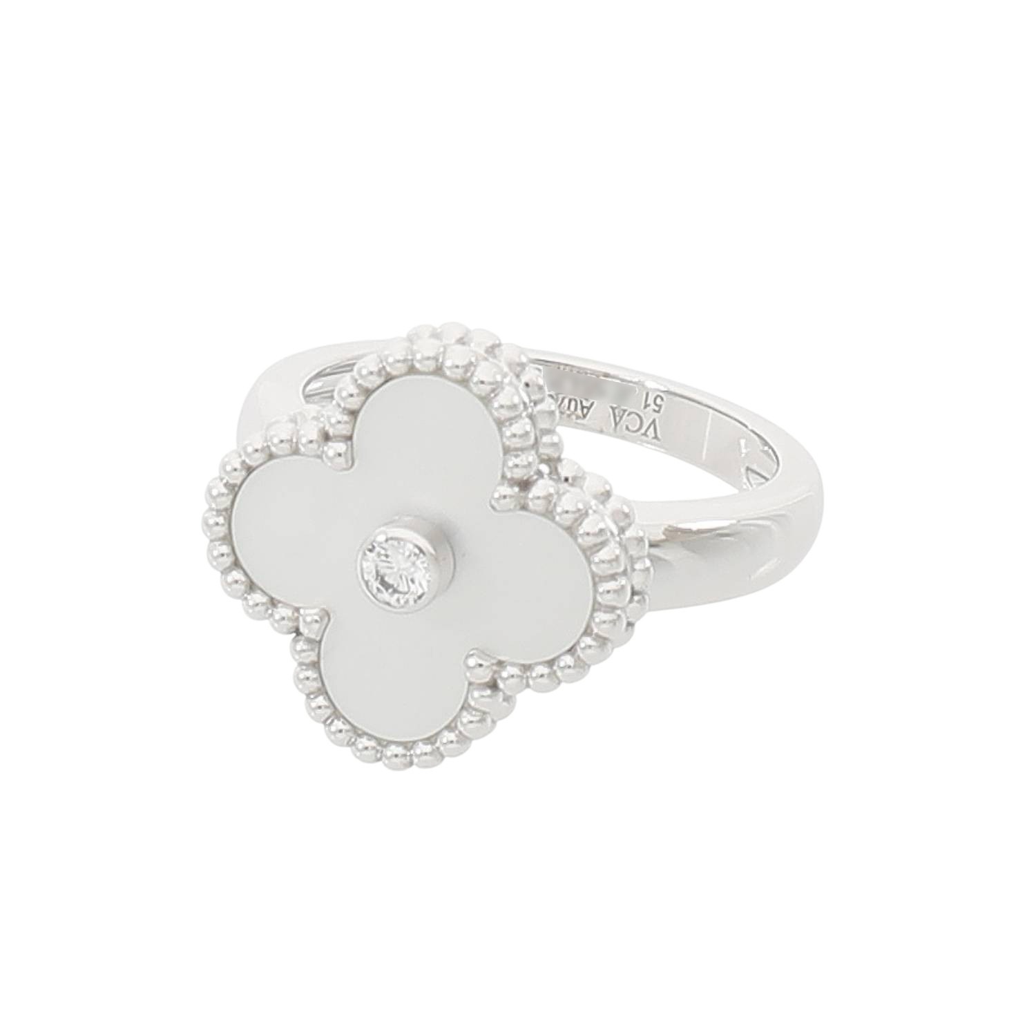 [中古]ヴァンクリーフ&アーペル ヴィンテージ アルハンブラ リング ホワイトマザーオブパール×ダイヤモンド ホワイトゴールド VCARF48951