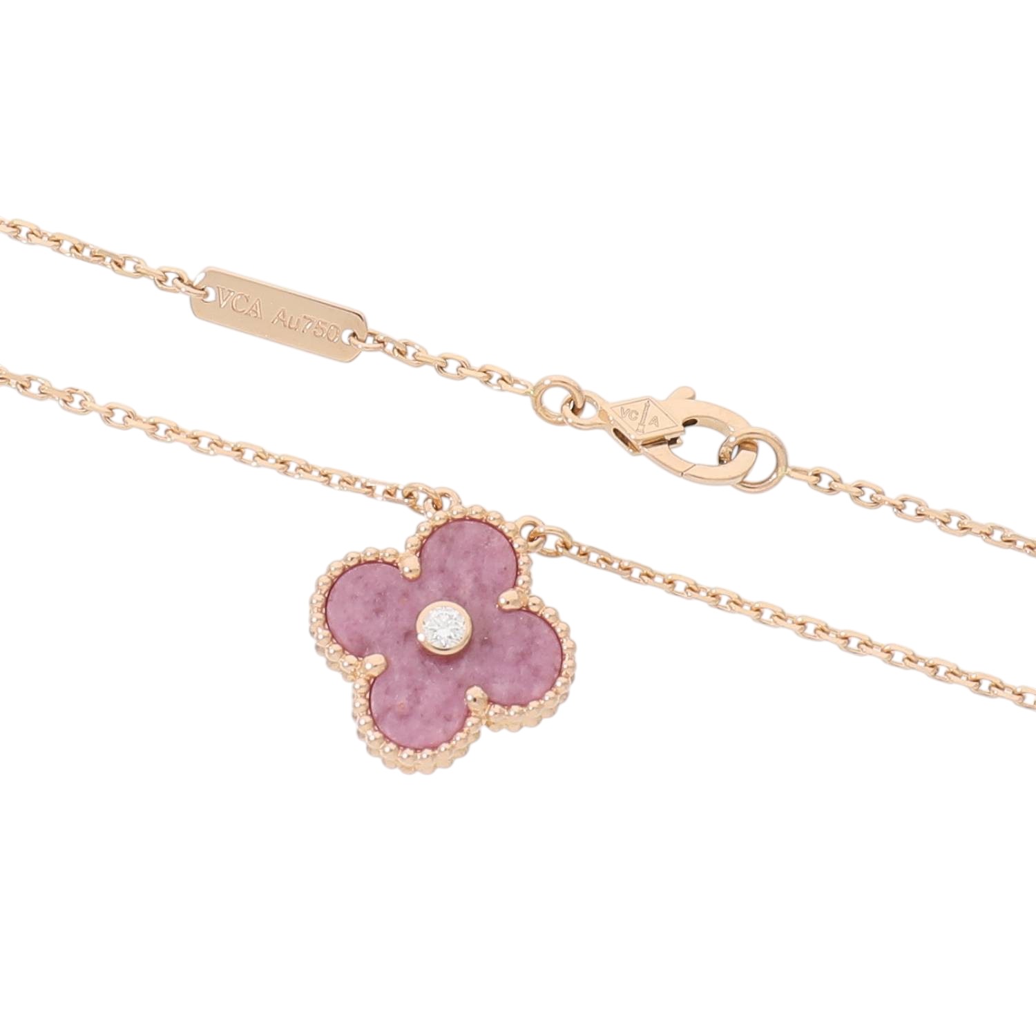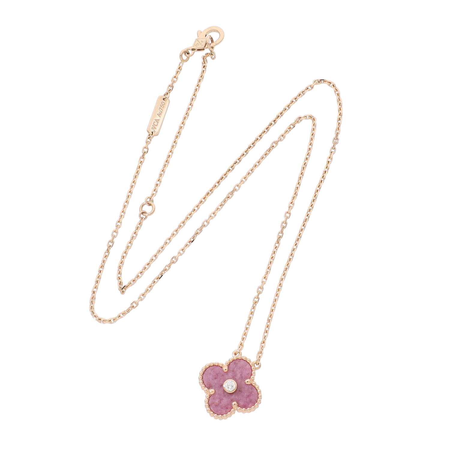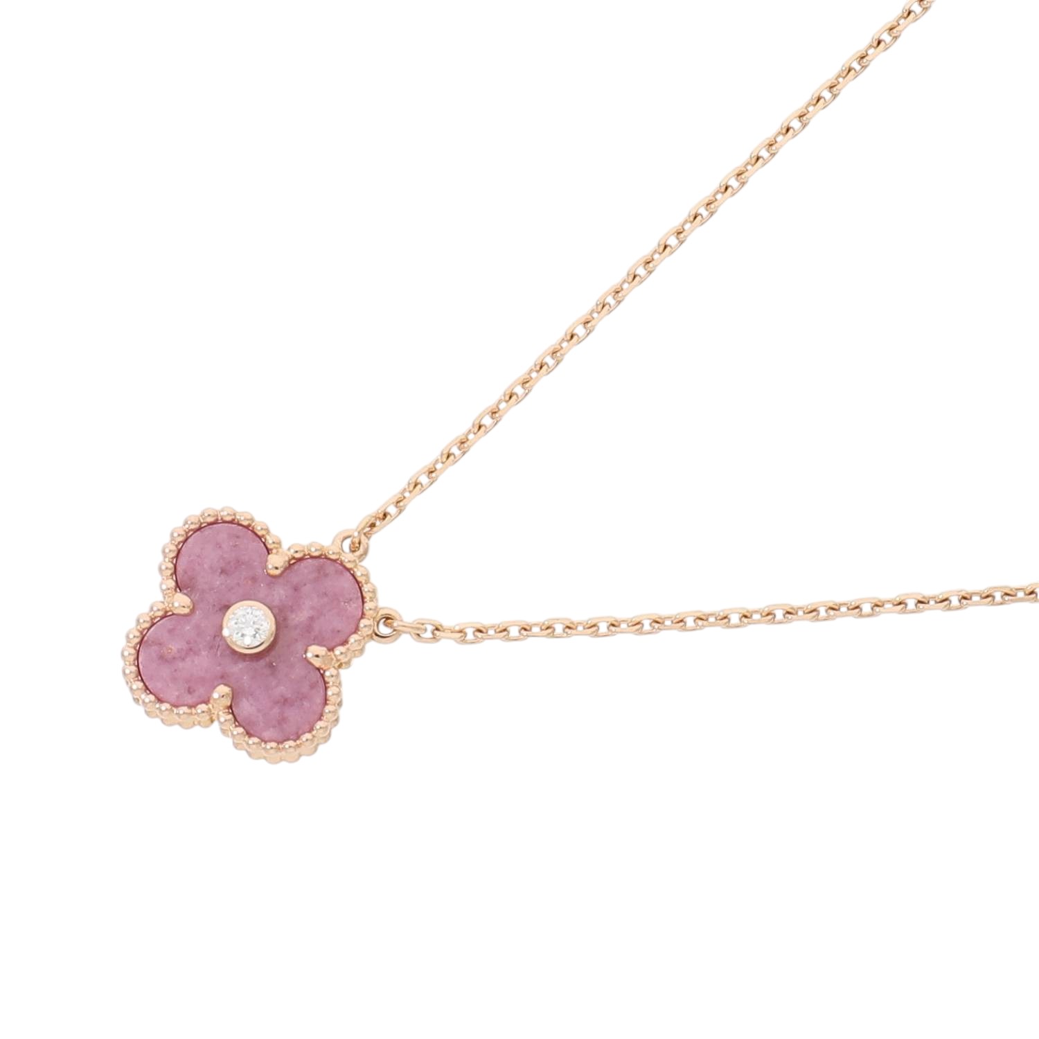 [中古]ヴァンクリーフ&アーペル ヴィンテージ アルハンブラ ロードナイト×ダイヤモンド ペンダント ネックレス 2021年ホリデー限定 ピンクゴールド VCARP7TD00
