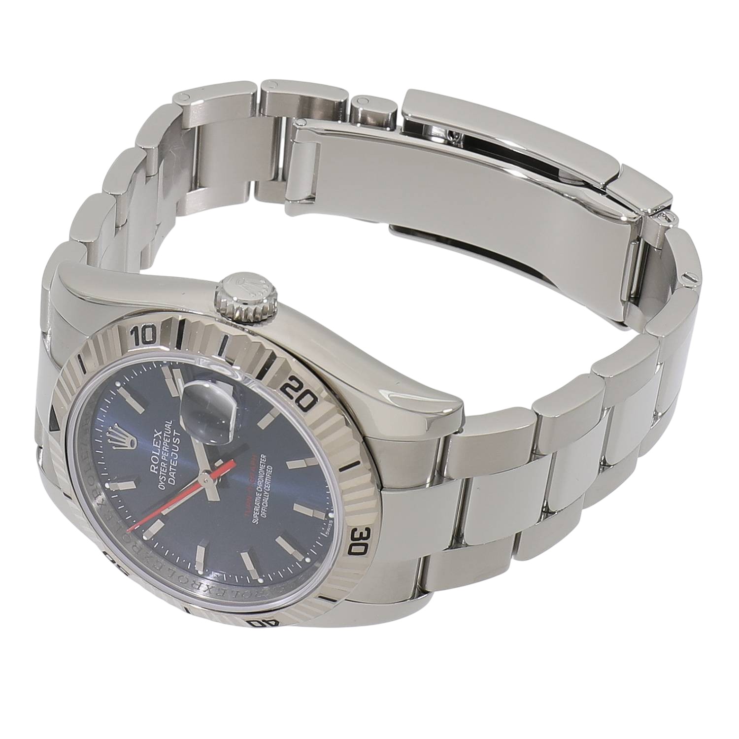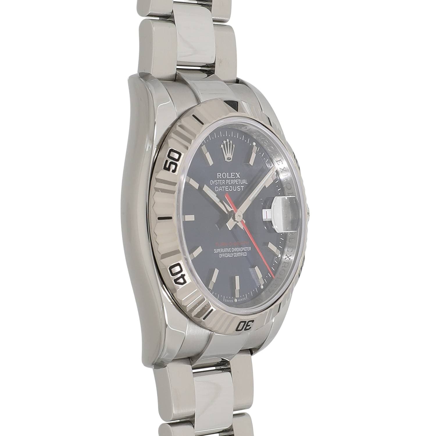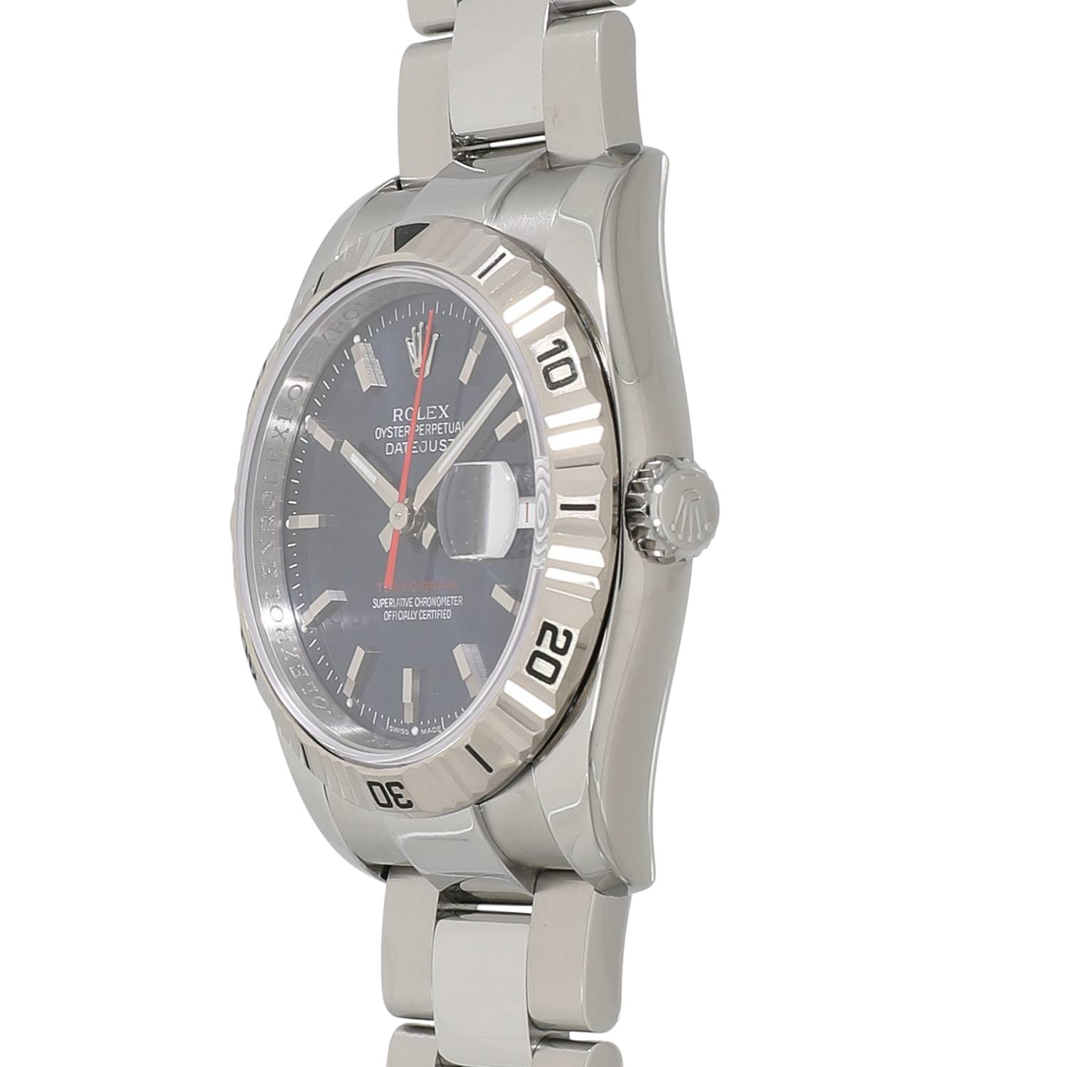 | モデルについて / Features | 初代ターノグラフRef.6202の誕生から、約50年が経過した2004年の新作モデルとして発表されました。デイトジャストをベースとして両方向に回転するホワイトゴールド製のベゼルを備え、サンダーバードの後継機種として誕生します。ベゼルが回転しゼロに戻ることから「turn-O-graph」というモデル名が付けられました。文字盤色のバリエーションも多彩で、ジュビリーとオイスターの2種類のブレスレットを選べる点も魅力です。2013年に生産終了となりましたが、通常のデイトジャストに比べ流通量は少なく、2018年頃からじわじわと価格高騰を始めている人気モデルです。 |