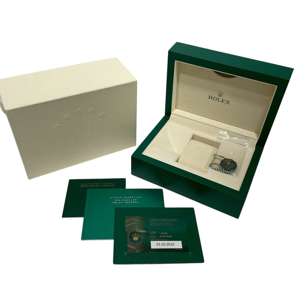 | モデルについて / Features | 2022年の新作 サブマリーナーの上記機種としてラインナップされるシードゥエラー。シードゥエラーの防水性を3900メートルまでに高め2008年にシードゥエラーディープシーとして誕生します。44ミリと大ぶりなケースは重厚な着け心地に加え圧倒的な迫力と存在感を感じさせます。Ref.116660のアップデート版としいて2018年に誕生したRef.126660、更にその後継機として2022年に発表されたのがRef.136660になります。防水性能や見た目の大きな仕様変更はありませんが、バックルのエクステンション方式がグライドロックシステムとなり、裏蓋の素材がRLXチタンへと変更されるなどのマイナーチェンジが行われている最新仕様となります。 |