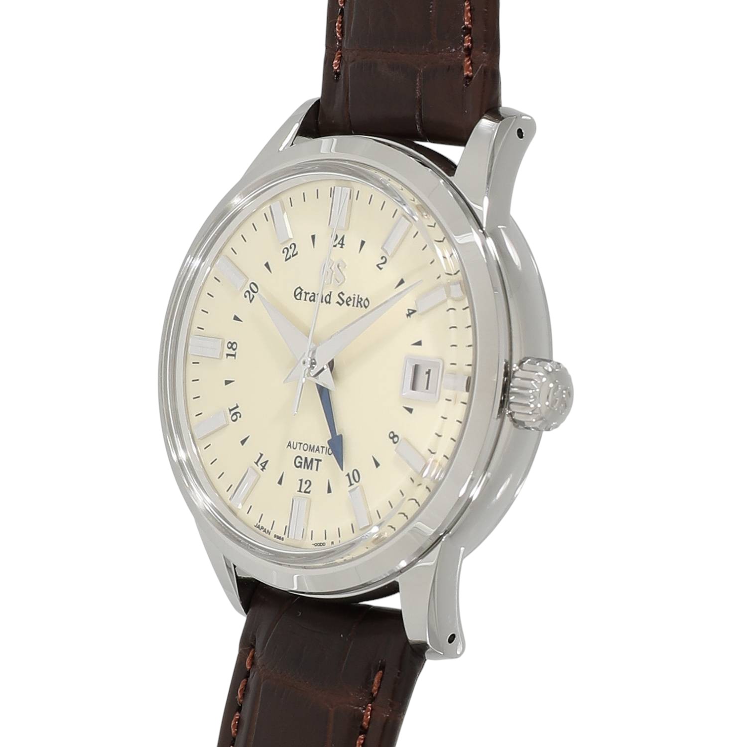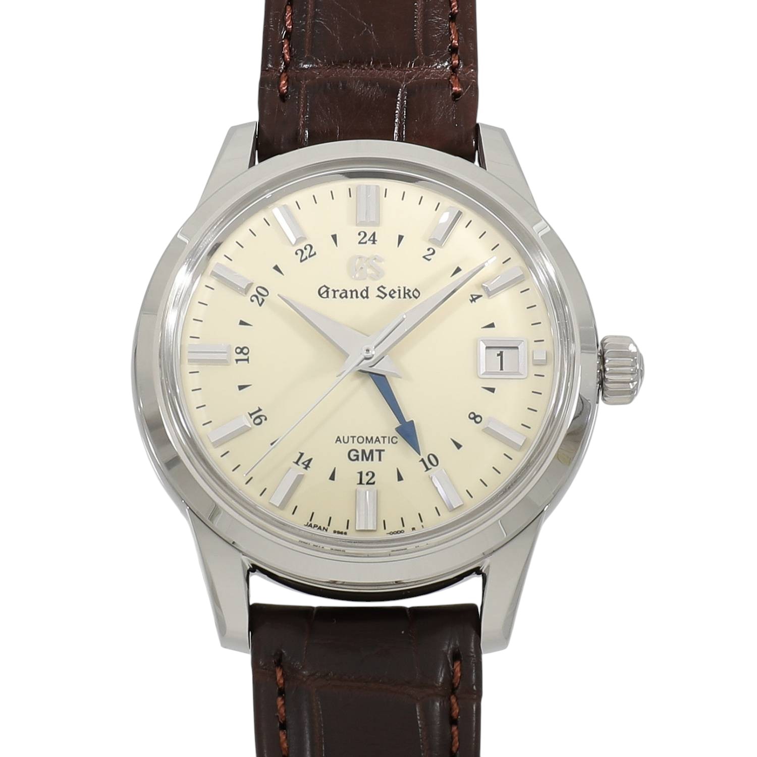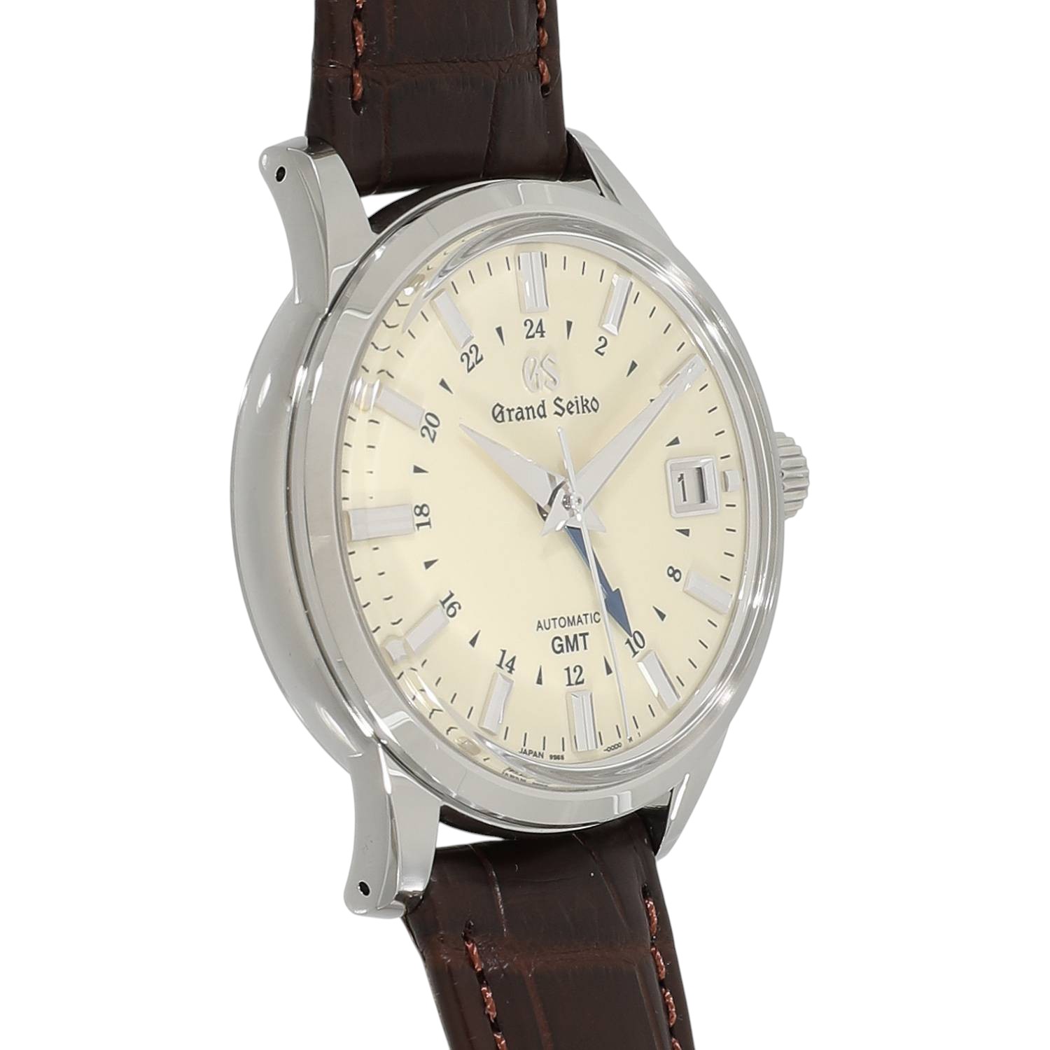 | モデルについて / Features | 1960年に初代モデルが誕生したグランドセイコーは、世界に誇るメイドインジャパンの高級ウォッチブランドの代表格と言えます。GMT機能と3日間のパワーリザーブを備えるキャリバー9S66を搭載しており、2か国の時間を同時に読み取る事が出来ます。上品さと優雅さを兼ね備えるエレガンスコレクションにラインナップされ、クラシカルな趣を感じさせるボックス型のサファイアガラス、艶やかなアイボリーダイヤルに青焼きされた24時間針など、随所にデザイナーの拘りが見て取れます。文字盤色のバリエーションが多いこのGMTモデルは、国内外問わず人気の高いコレクションです。 |