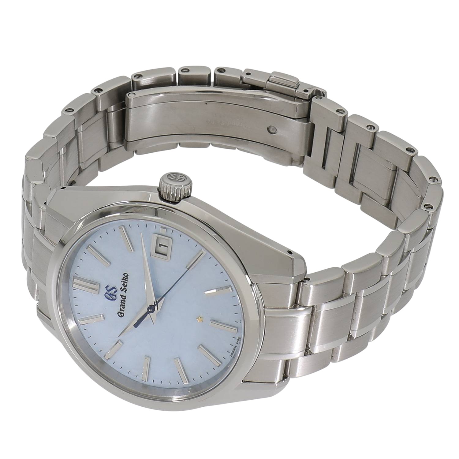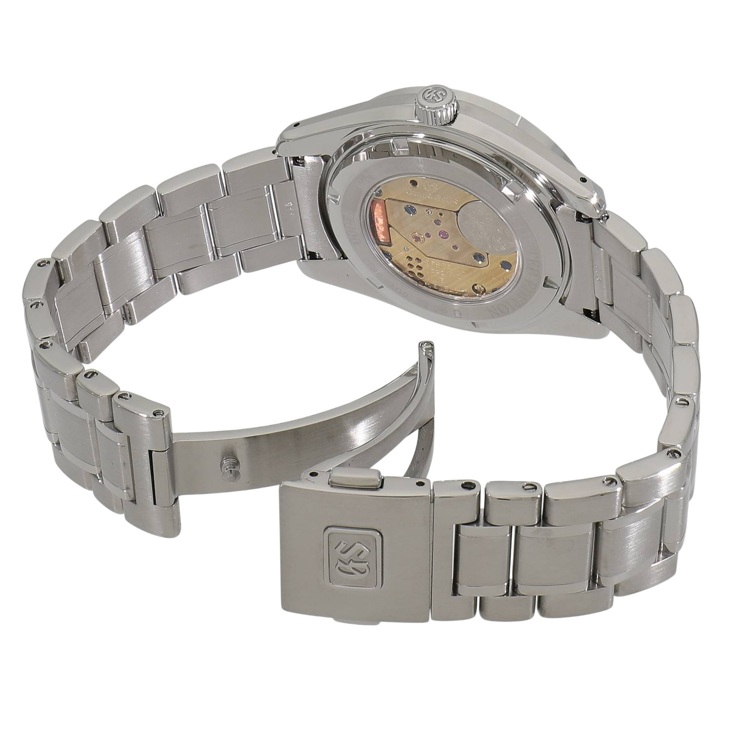 | モデルについて / Features | 1967年にセイコースタイルを確立した「44GS」の誕生55周年を記念した限定モデルです。グランドセイコーのクォーツモデルの製造を行う『信州 時の匠工房』は信州に位置します。信州地方で見られる雲海をイメージしてデザインされた、美しい淡いライトブルーカラーの文字盤が特徴的な限定モデルです。世界限定2000本ですが、日本国内では800本のみ販売された希少なコレクションです。裏蓋はクォーツモデルとしては珍しくスケルトン式を採用しており、究極の精度を誇るCal.9F85を眺める事が出来ます。 |
