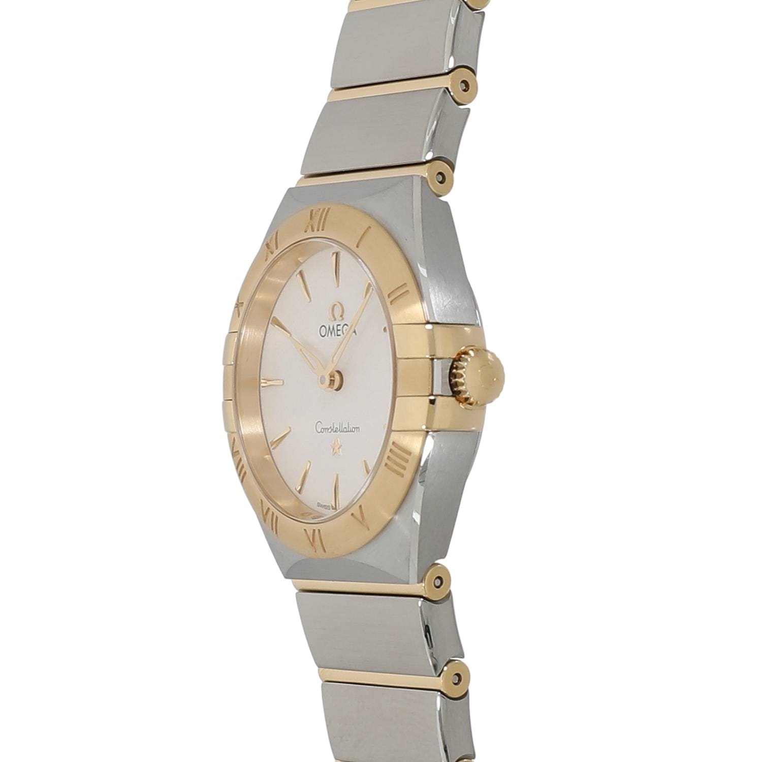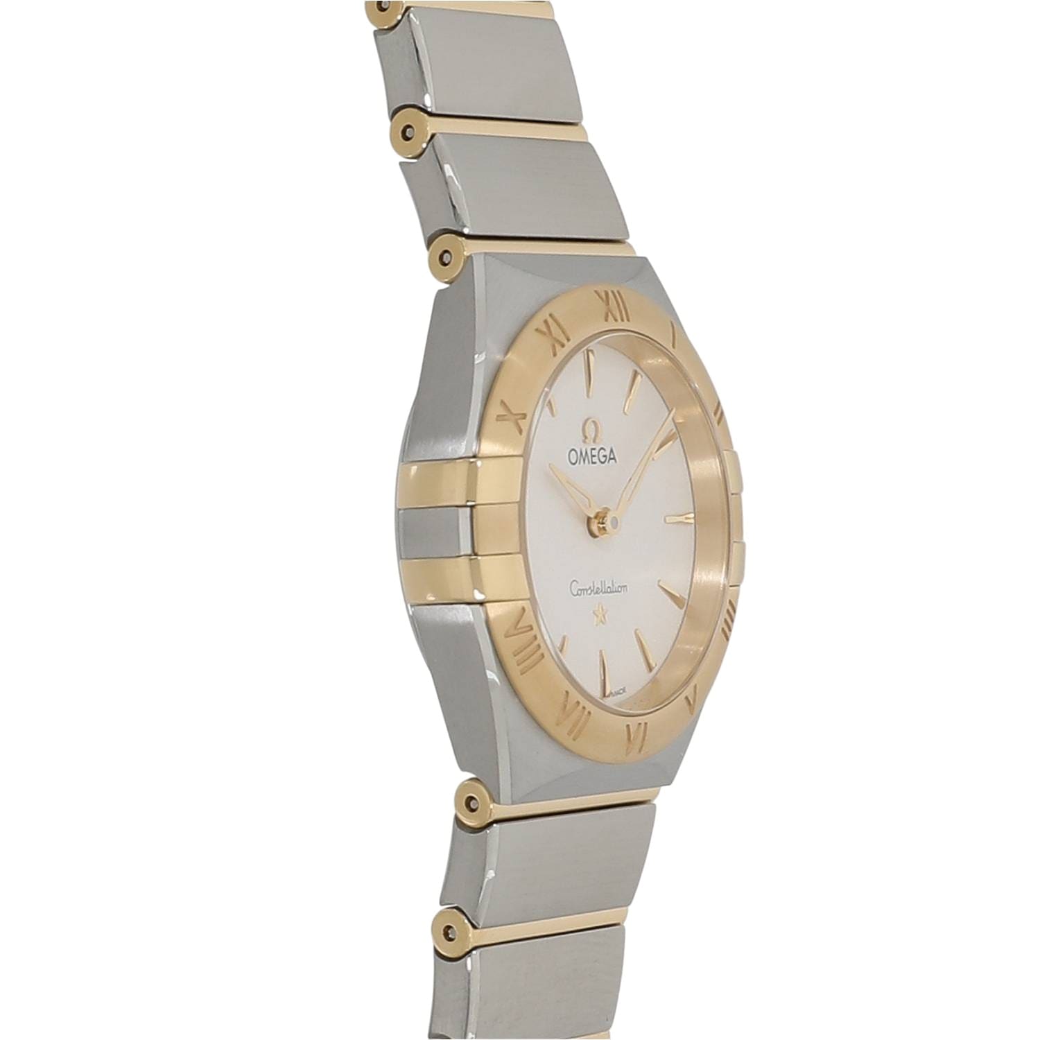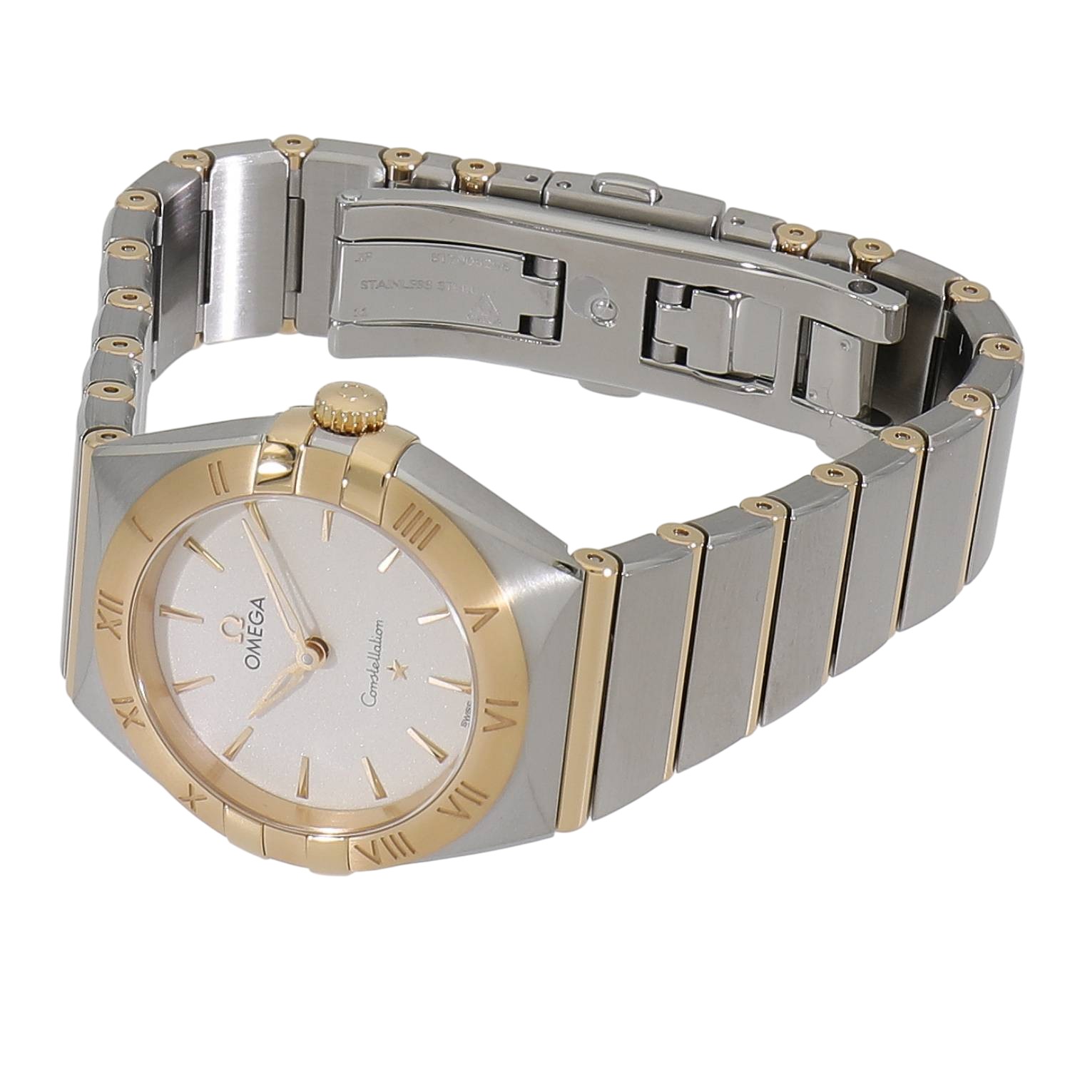 | モデルについて / Features | オメガのアイコン的コレクションであるコンステレーションは1952年に初代モデルが誕生しました。3時と9時位置にある爪が特徴的で、発表されてから不朽のデザインコンセプトで多くの女性に愛されるオメガのドレスウォッチにおける象徴的モデルです。5世代目にあたりマンハッタンと名づけられたコンステレーションで、ケースの両サイドにある爪がスリム化されるなど、よりモダンな印象へとアップデートされました。ステンレスとイエローゴールドのケースとブレスレットは、ブラッシュ(ヘアライン仕上げ)仕様となっております。 |