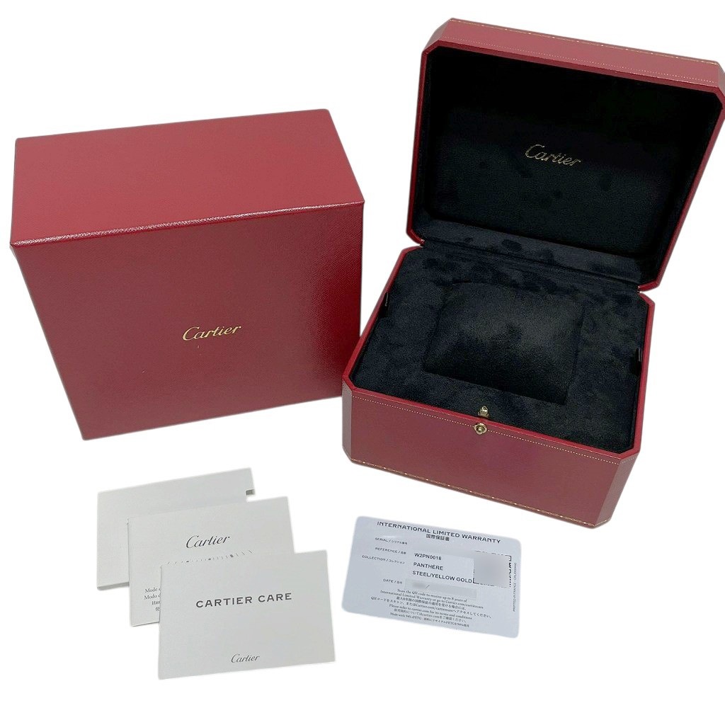 | モデルについて / Features | 2025年の新作 1980年代に誕生してから長きに渡り多くの女性を魅了してきたパンテール。パンテールという名の通りデザインのモチーフは、メゾンの象徴として多くのコレクションのモチーフとされる豹(パンサー)です。薄型のケースにしなやかで腕馴染みの良いブレスレットの組み合わせは抜群の装着感です。カルティエを代表する人気モデルでありながら、惜しまれつつも生産終了となっていましたが2017年に待望の復活を遂げます。スモール、ミディアム、ラージの3つのサイズで展開され、素材のバリエーションが豊富なのも魅力です。裏蓋のネジの仕様が変更となり型番が改変されました。 |