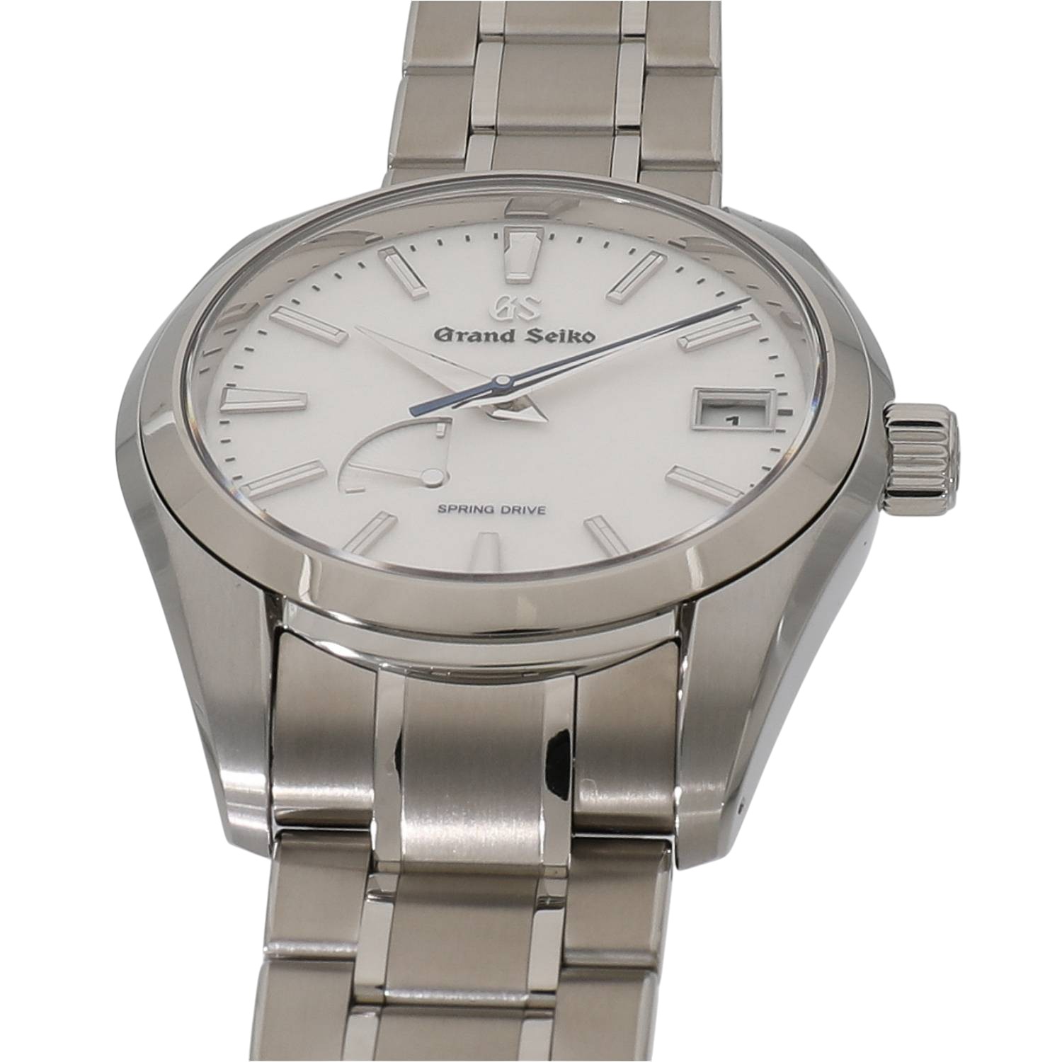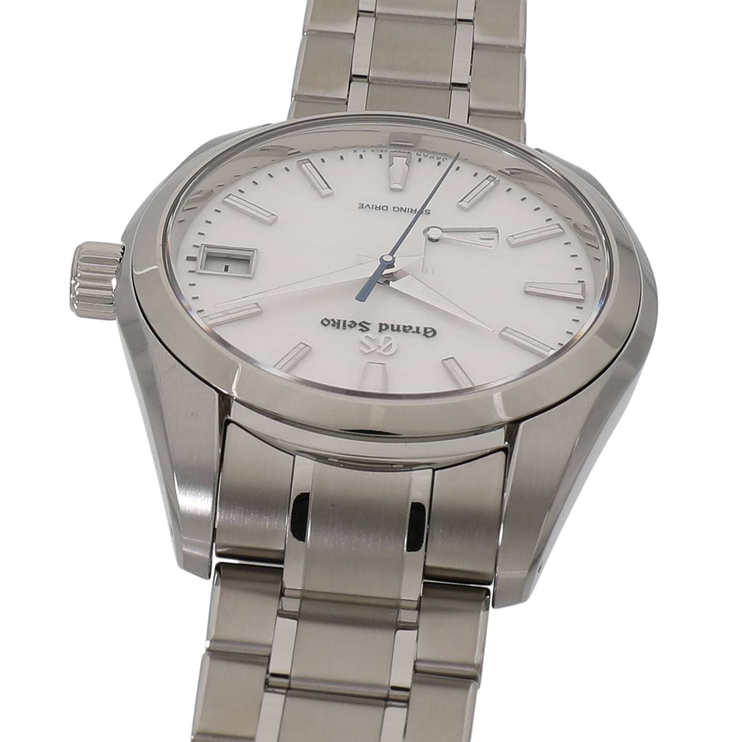 | モデルについて / Features | 2021年の新作 SEIKOが開発した、機械式とクォーツが融合したハイブリッドムーブメントである、自動巻き式のスプリングドライブを搭載しています。搭載する9R65は最大で3日間稼働します。3時位置にはカレンダー表示、7~8時位置にはパワーリザーブインジケーターを装備しています。スノーフレークや雪白などと呼ばれる特徴ある純白の文字盤に、ブルーの秒針を組み合わせた非常に美しいフェイスです。 |