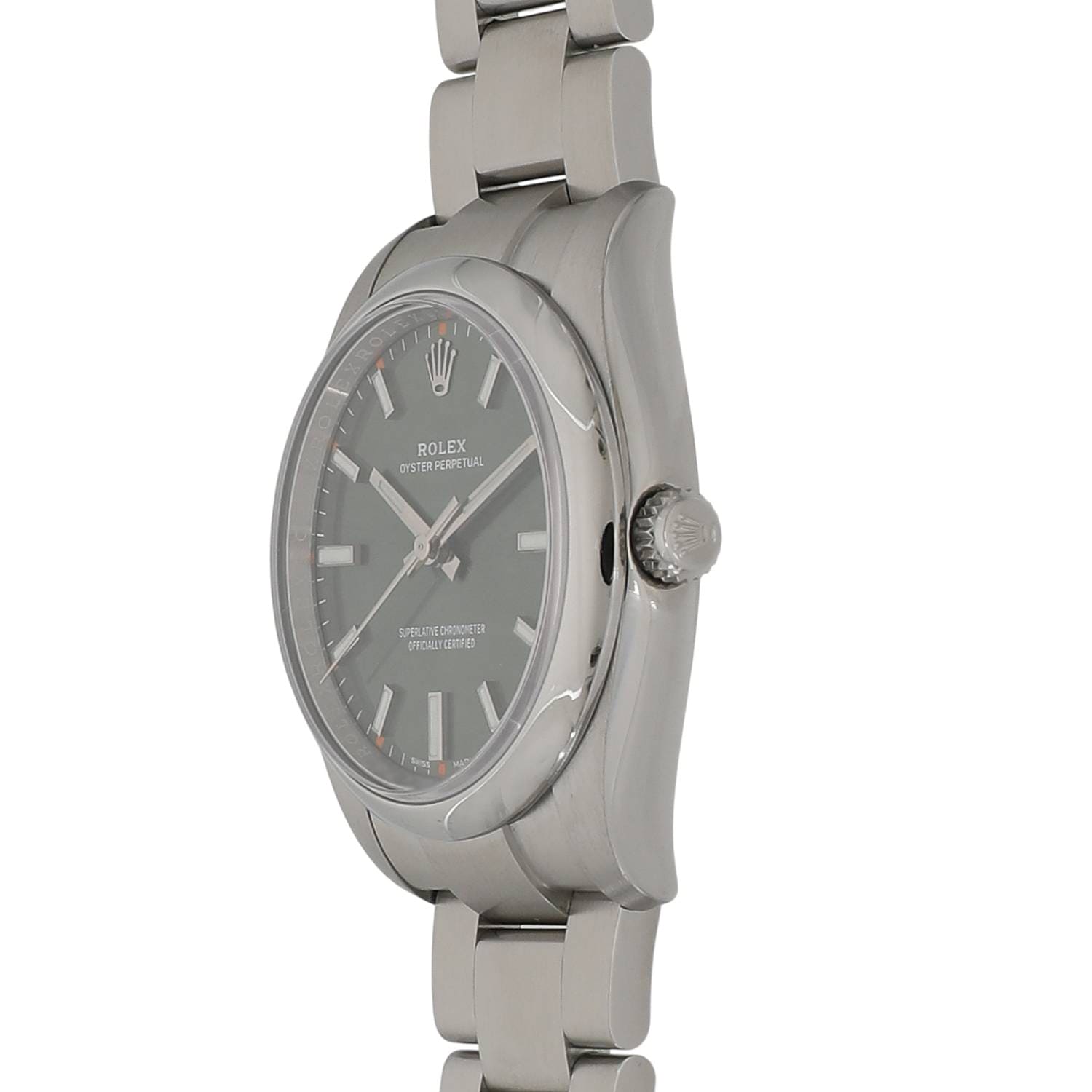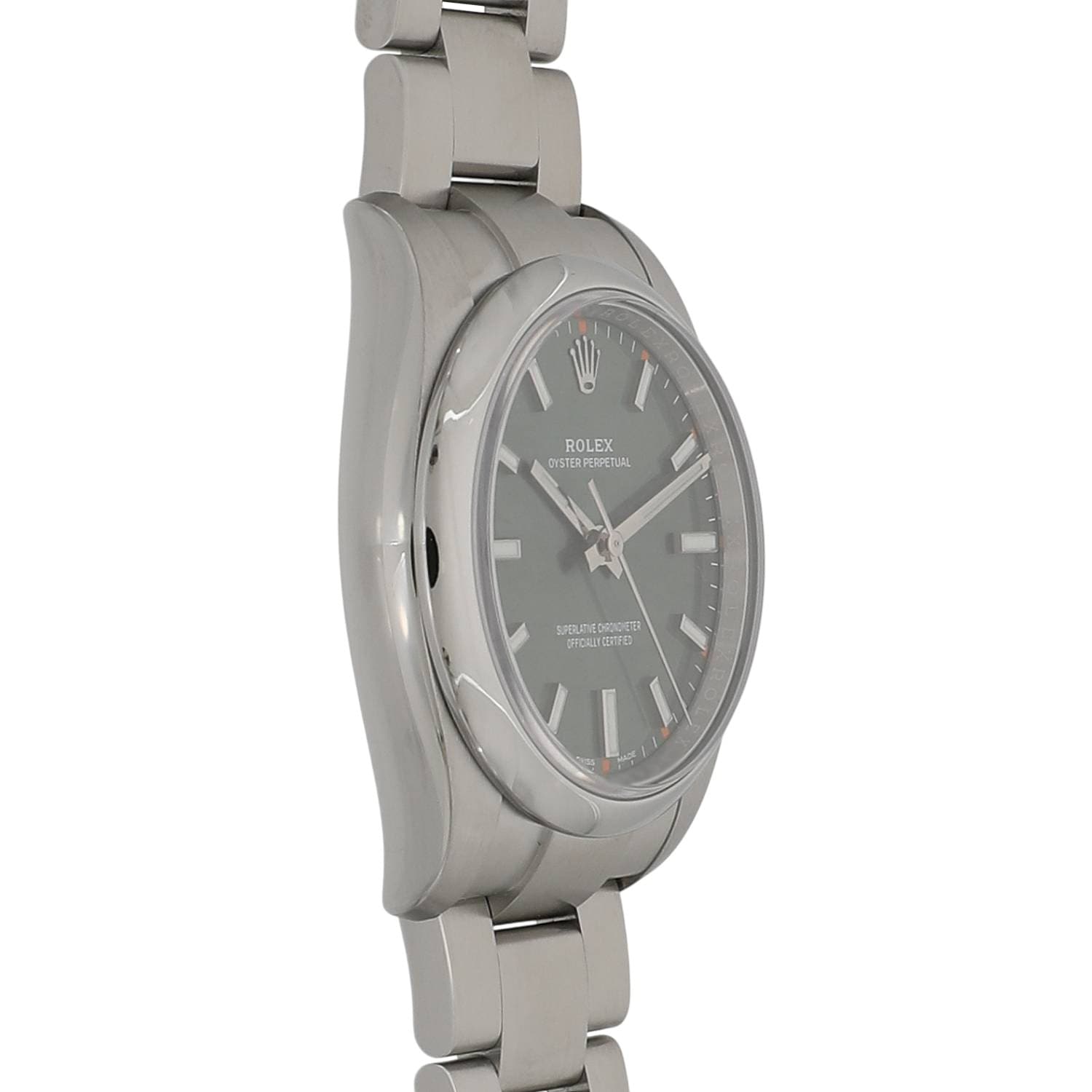 | モデルについて / Features | デイト表示の無い3針と非常にシンプルなデザインで人気のオイスターパーペチュアル。Ref.114200は2007年~2014年までエアキングとして展開されましたが、2014年以降は同Refでエアキングのロゴは廃されオイスターパーペチュアルとして展開されるようになりました。丸みを帯びたドーム型のポリッシュベゼル、ブレスレットのコマやバックルの仕様などが大幅に変更が施され、以前のエアキングに比べ堅牢性や高級感が増した仕上がりとなっております。34mmと小ぶりなサイズなので手首が細めの男性はもちろん、女性にもお勧めできるサイズ感です。 |