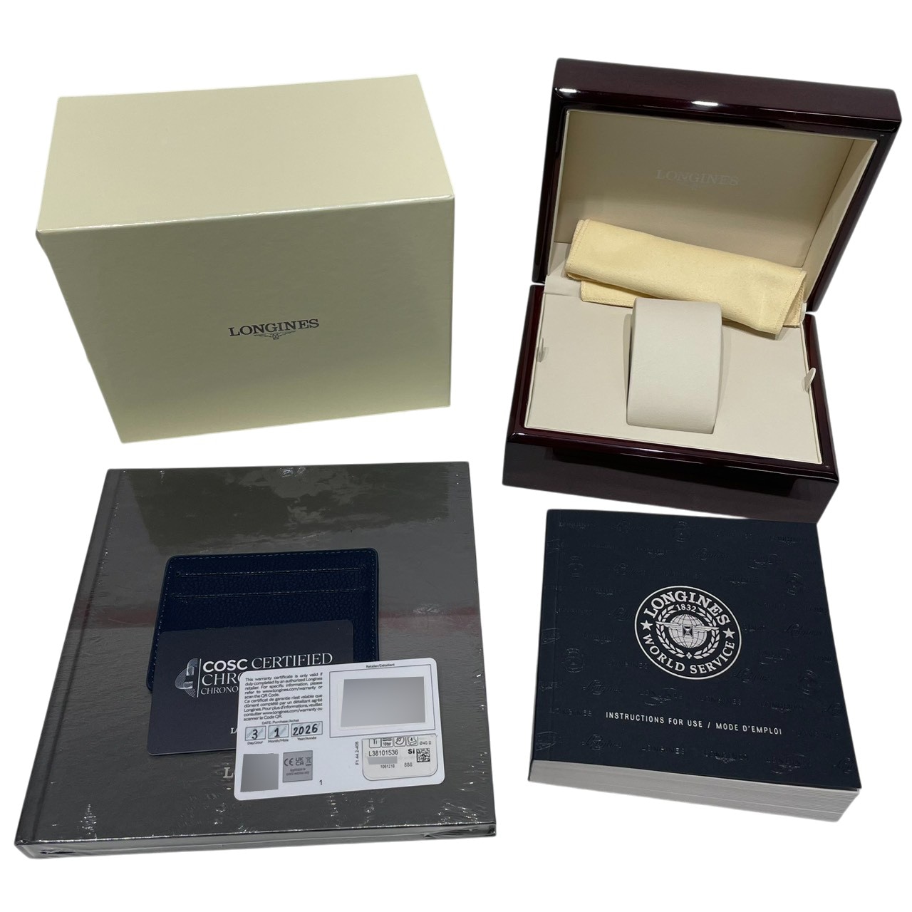 | 付属品 / Accessories | 純正ボックス(内箱マクラ周り少し劣化) / 国際保証書(国内:2026年1月 ) / COSCカード、説明書、ブックレット、カードケース、クロス |
