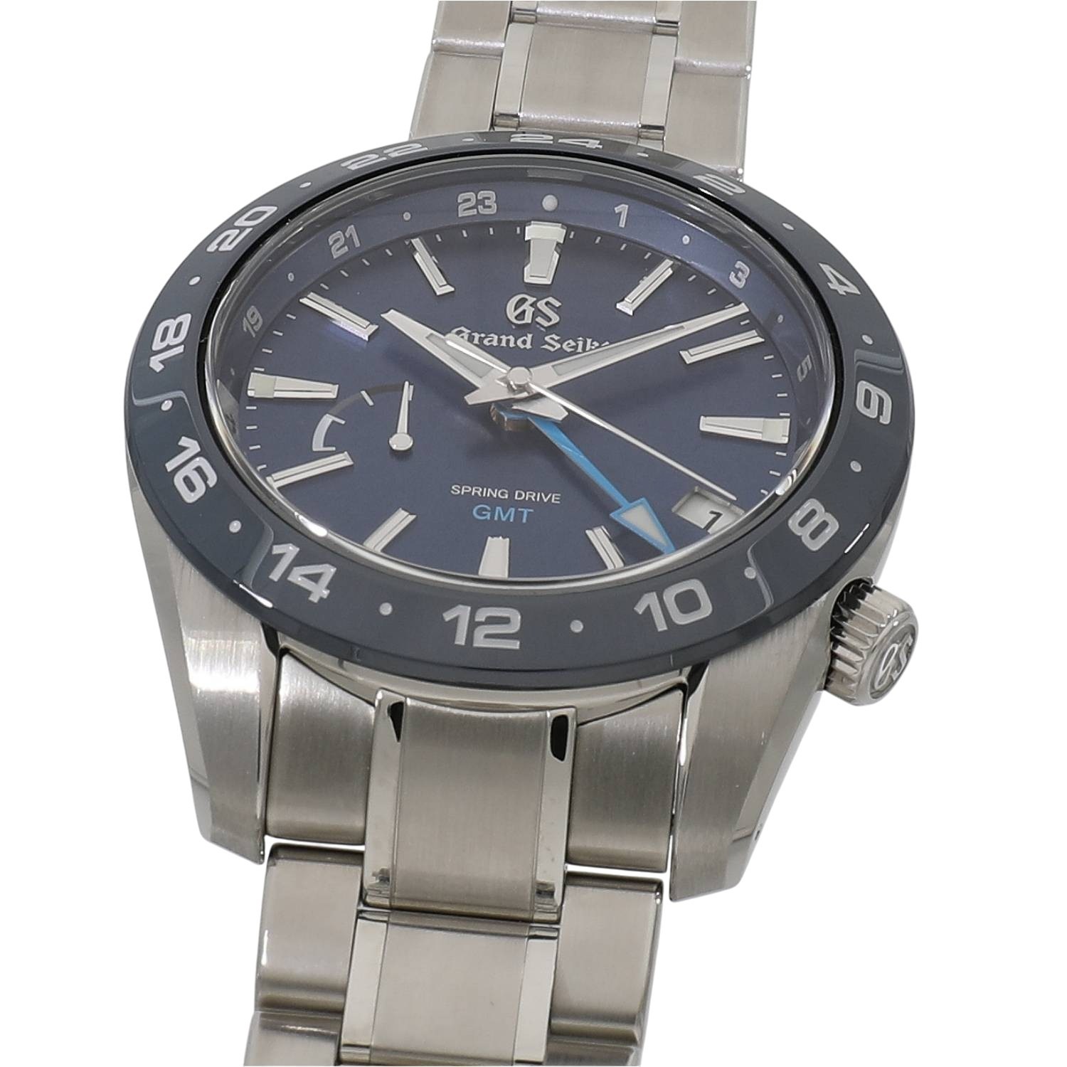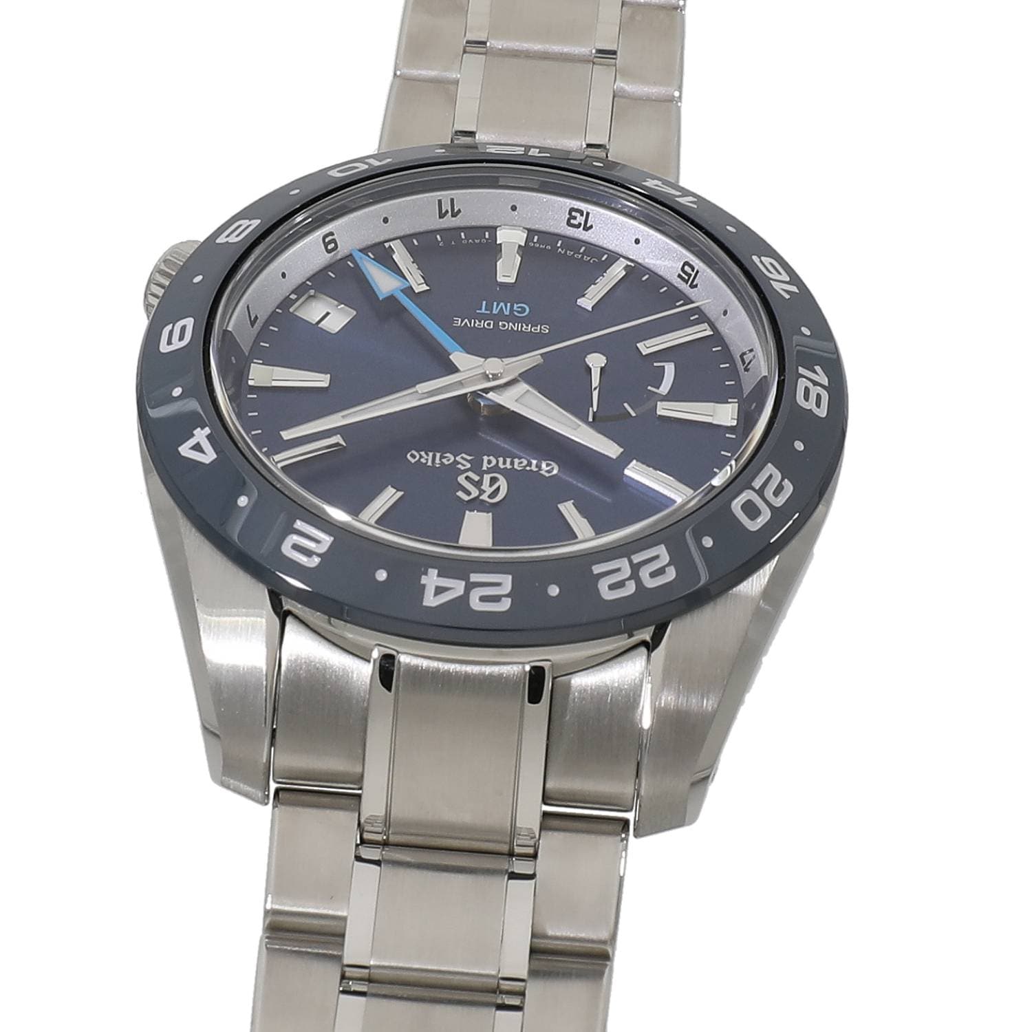| モデルについて / Features | 日本が世界に誇る高級時計ブランドであるグランドセイコー。スポーツコレクションとしてラインナップされ、グランドセイコーらしい上品さを残しつつ、カジュアルさを兼ね備えるデザインです。文字盤とベゼル、第2時間帯を指し示すGMT針をブルーで統一しています。スポーティーなモデルらしくアクティブな使用環境を想定し、ベゼルにはファインセラミックスの中でも特に高い強度と靱性を持つジルコニアセラミックを採用、着用時の手首の動きを妨げる事が無いようにリュウズは4時位置に配置されています。セイコーが独自開発したクオーツと機械式のハイブリットムーブメントであるスプリングドライブを搭載しており、流れるようなスイープ運針が目を惹きます。2つの時刻を同時に読み取れるGMT機能と、9時位置にはパワーリザーブインジケーターを備えます。 |