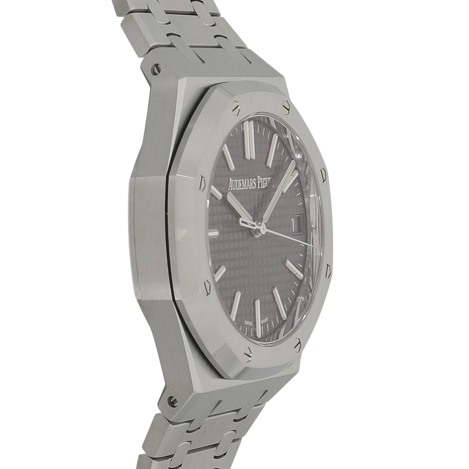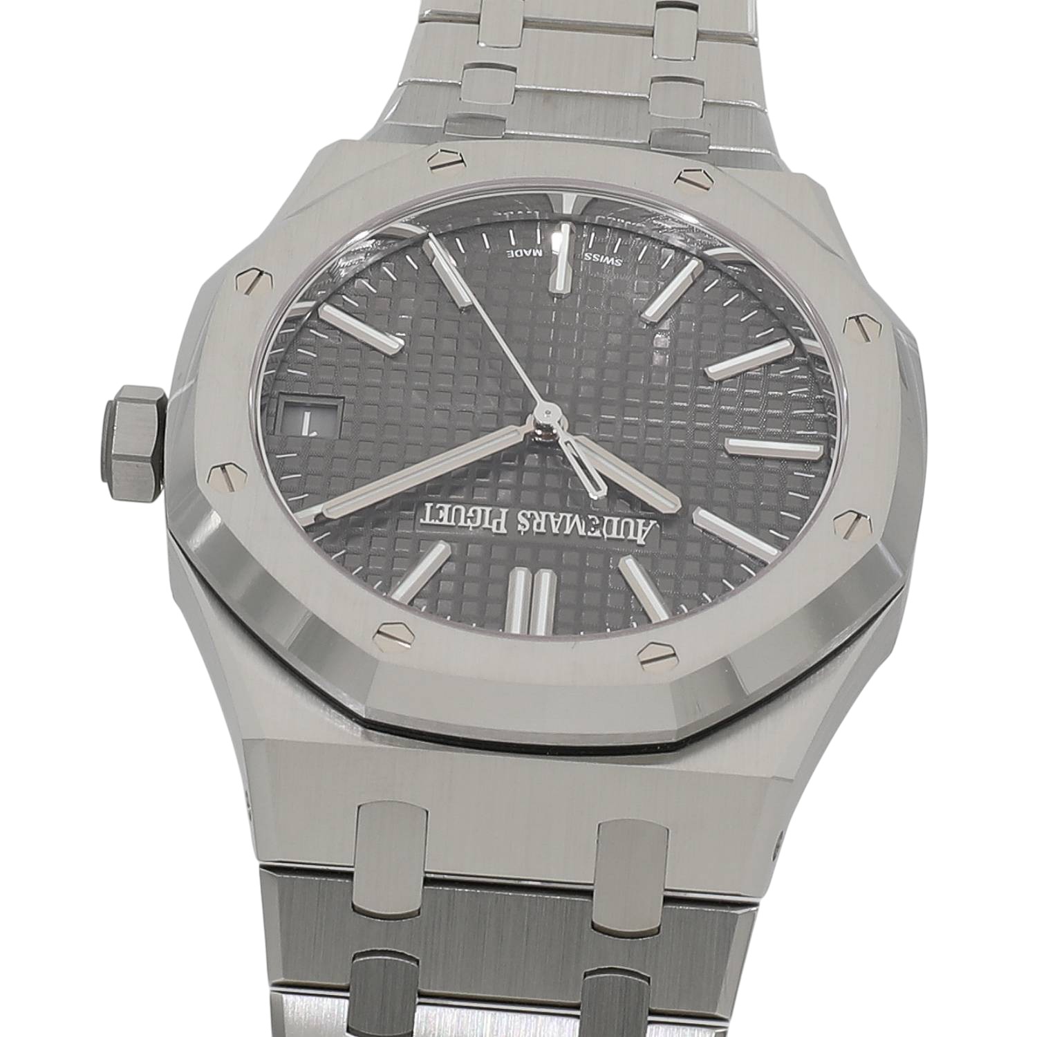 | モデルについて / Features | 2022年の新作 時計デザイン界の巨匠であるジェラルド・ジェンタ氏のデザインを手がけ、1972年に初代ジャンボが誕生したロイヤルオーク。今やオーデマピゲのアイコン的コレクションであり、ラグジュアリースポーツウォッチの始祖的存在です。船窓をデザインモチーフとしたビス留めされた8角形のベゼル、ワッフル状のタペストリー模様のダイヤル、ケースと一体化したブレスレットなど一目でそれと解るデザインが人気です。Ref.15510は初代ロイヤルオークが誕生し50周年を迎えた2022年に発表されます。Ref.15500と同じくCal.4302を搭載しますが、ダイヤルのデザインやブレスレットなど様々なアップデートが施されています。 |