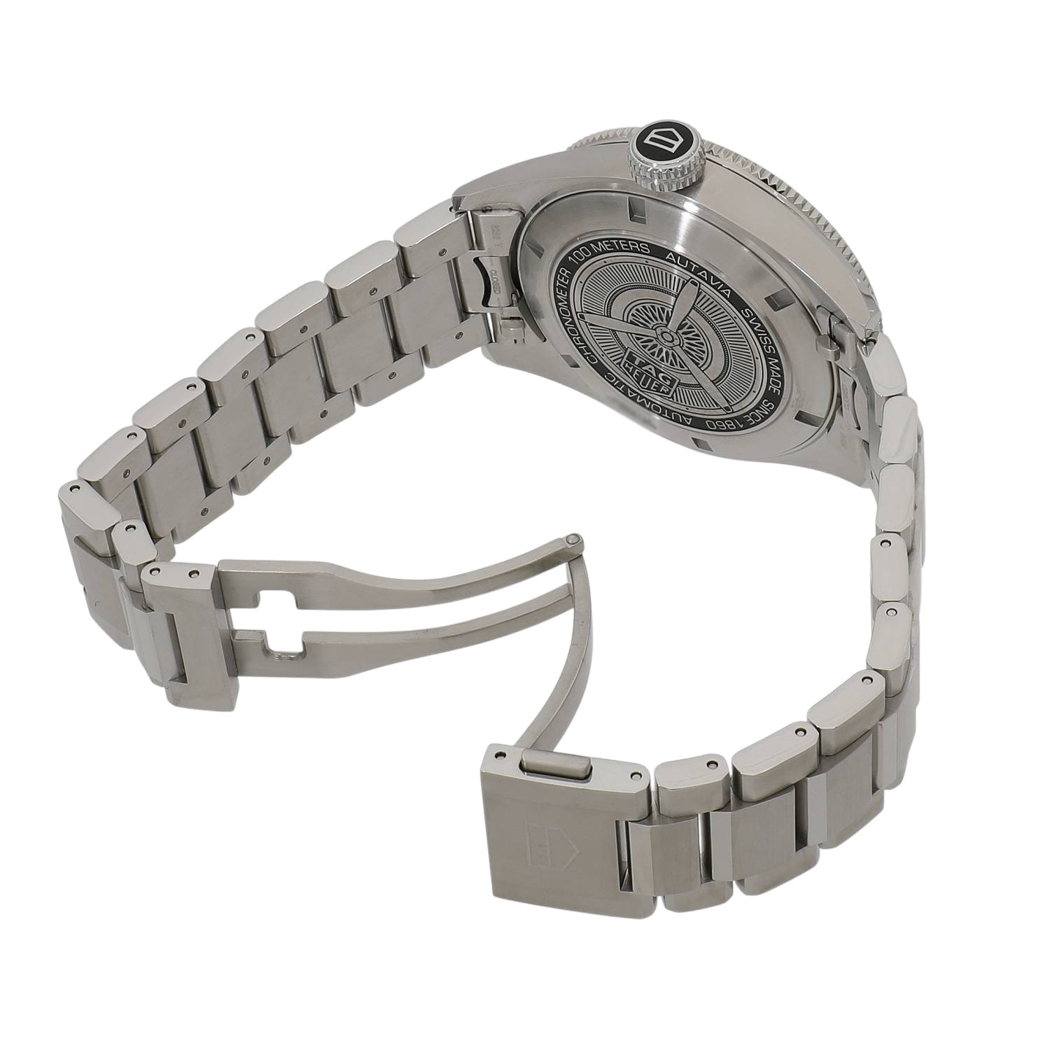 | モデルについて / Features | 2022年の新作 AUTAVIA(オータヴィア)の由来は、AUTOMOBILE(自動車)と(AVIATION)から造られた造語で、初代モデルは1933年に誕生しました。その名の通り航空機のコックピットや自動車のダッシュボードカウンターにインスピレーションを受けてデザイン。こちらはオータヴィアの誕生60周年を記念したアニバーサリーモデルになり、COSC認定ムーブメント「キャリバー7」を搭載しています。ブルー&ブラックのセラミック製24時間目盛りを配した両方向回転式ベゼルが目を引きます。 |