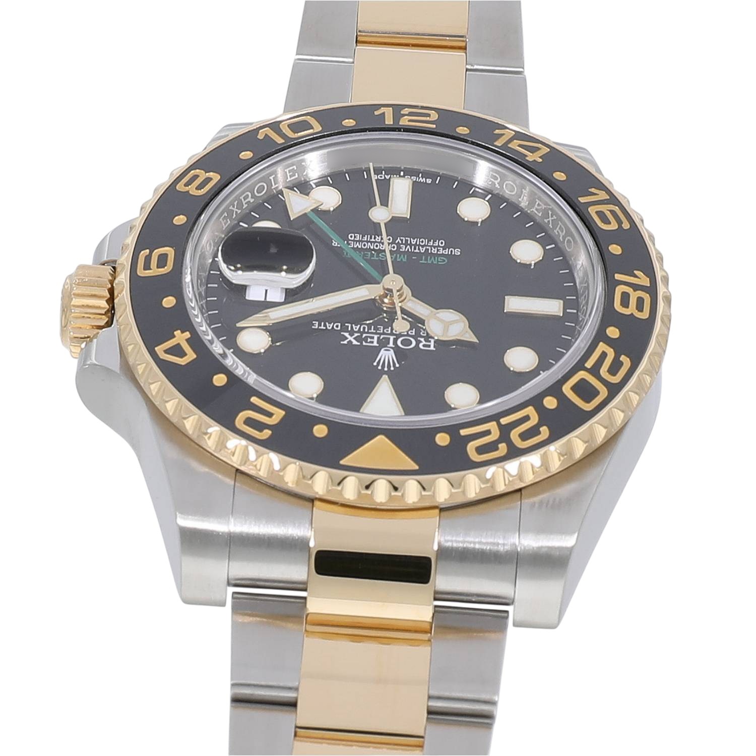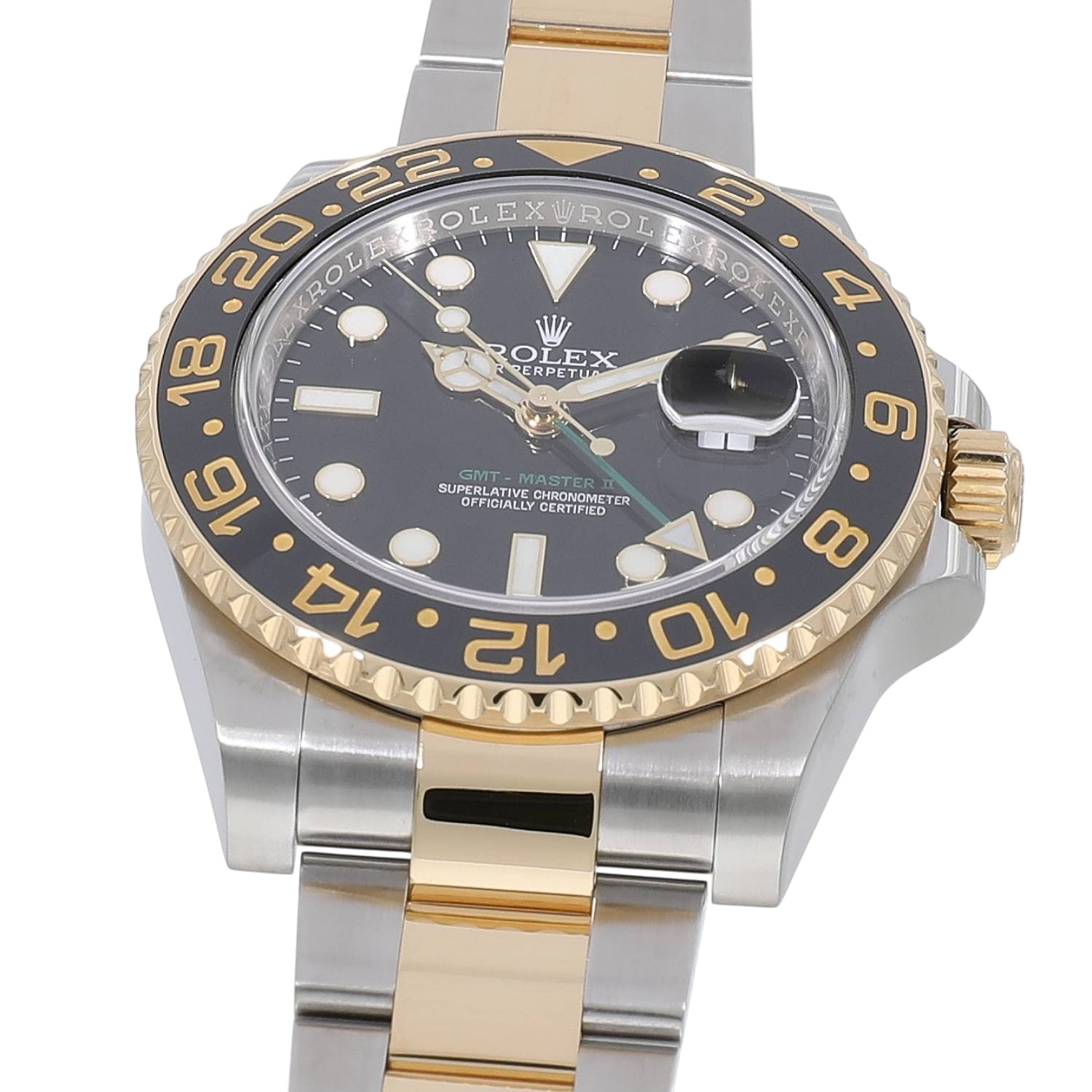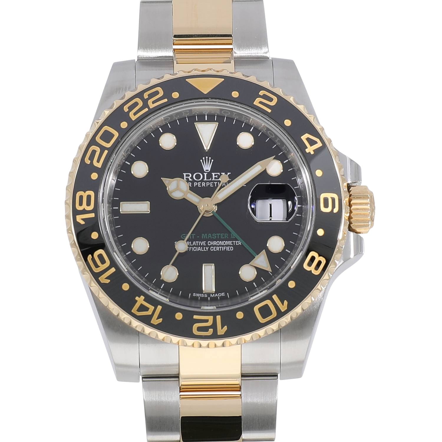 | モデルについて / Features | 24時間針と両方向に回転するベゼルを駆使する事で、3か国の時間帯を同時に読み取る事ができるGMTマスターII。2007年に発表されたモデルより、ベゼルディスクは傷が付き難いセラミック製へ、ラグ幅はより太く変更され、全体的に高級感と堅牢性そして実用性が格段に向上しました。ステンレスとイエローゴールドのロレゾール仕様でラグジュアリーさを感じさせます。GMT針はロレックス社のコーポレートカラーであるグリーンが採用されています。ポリッシュ仕上げとヘアライン仕上げを巧みに組み合わせており、スポーツモデルながらエレガントさも感じられます。 |