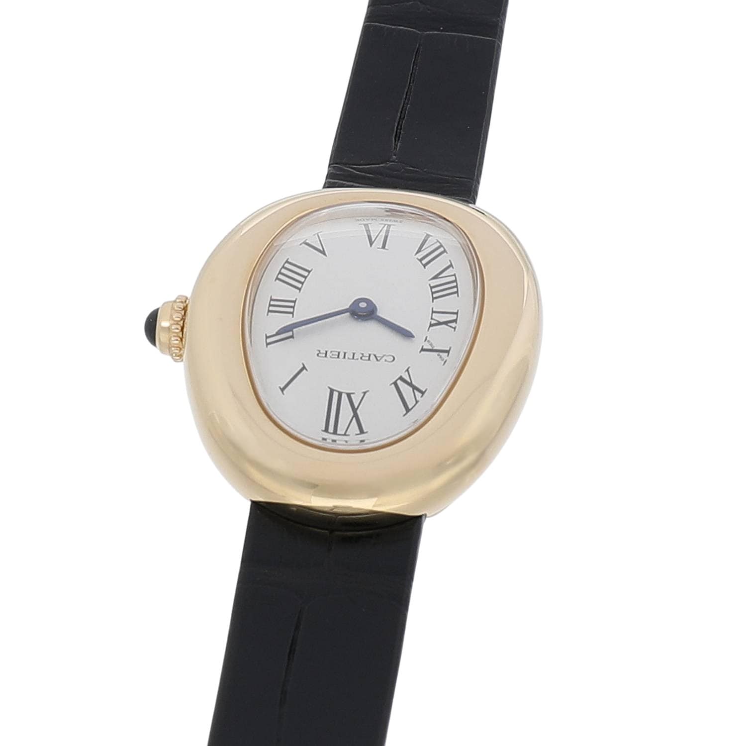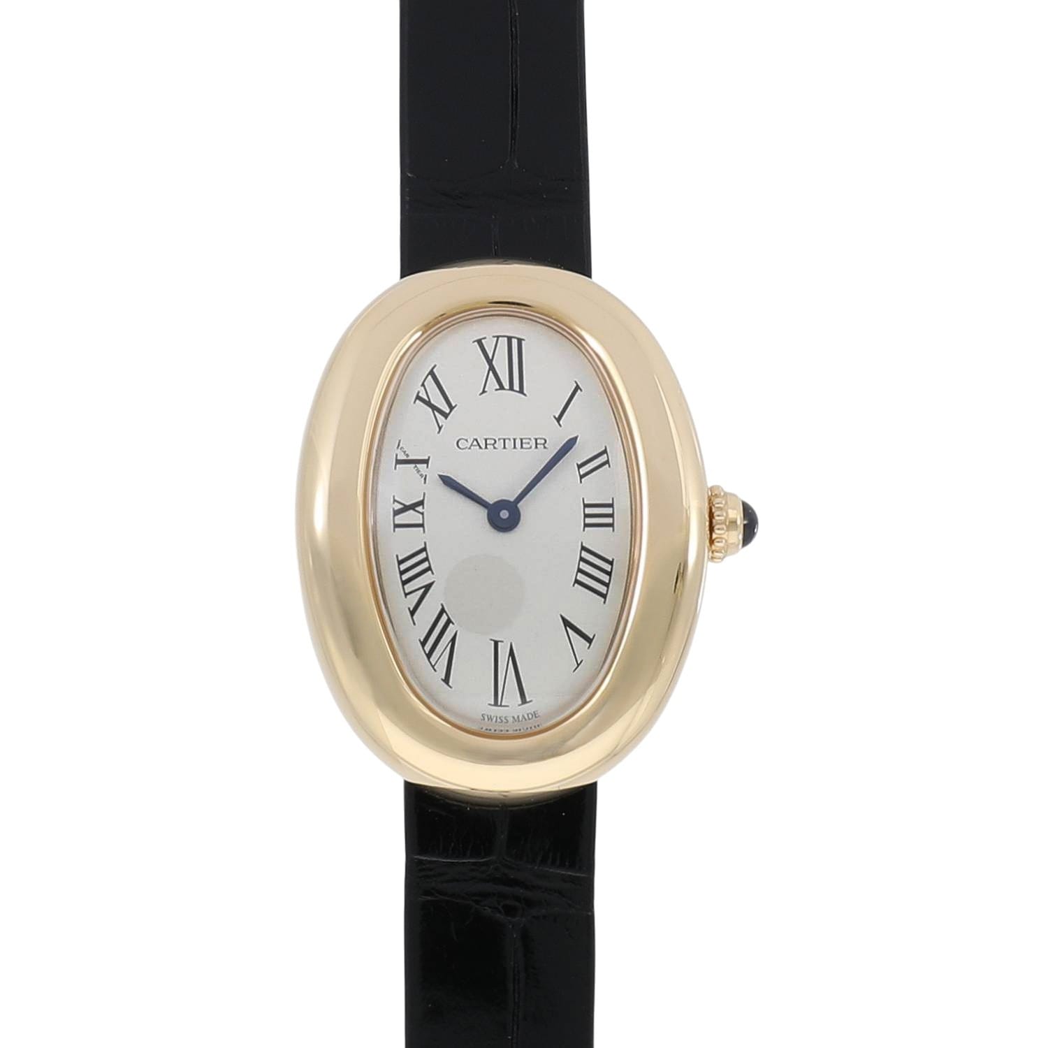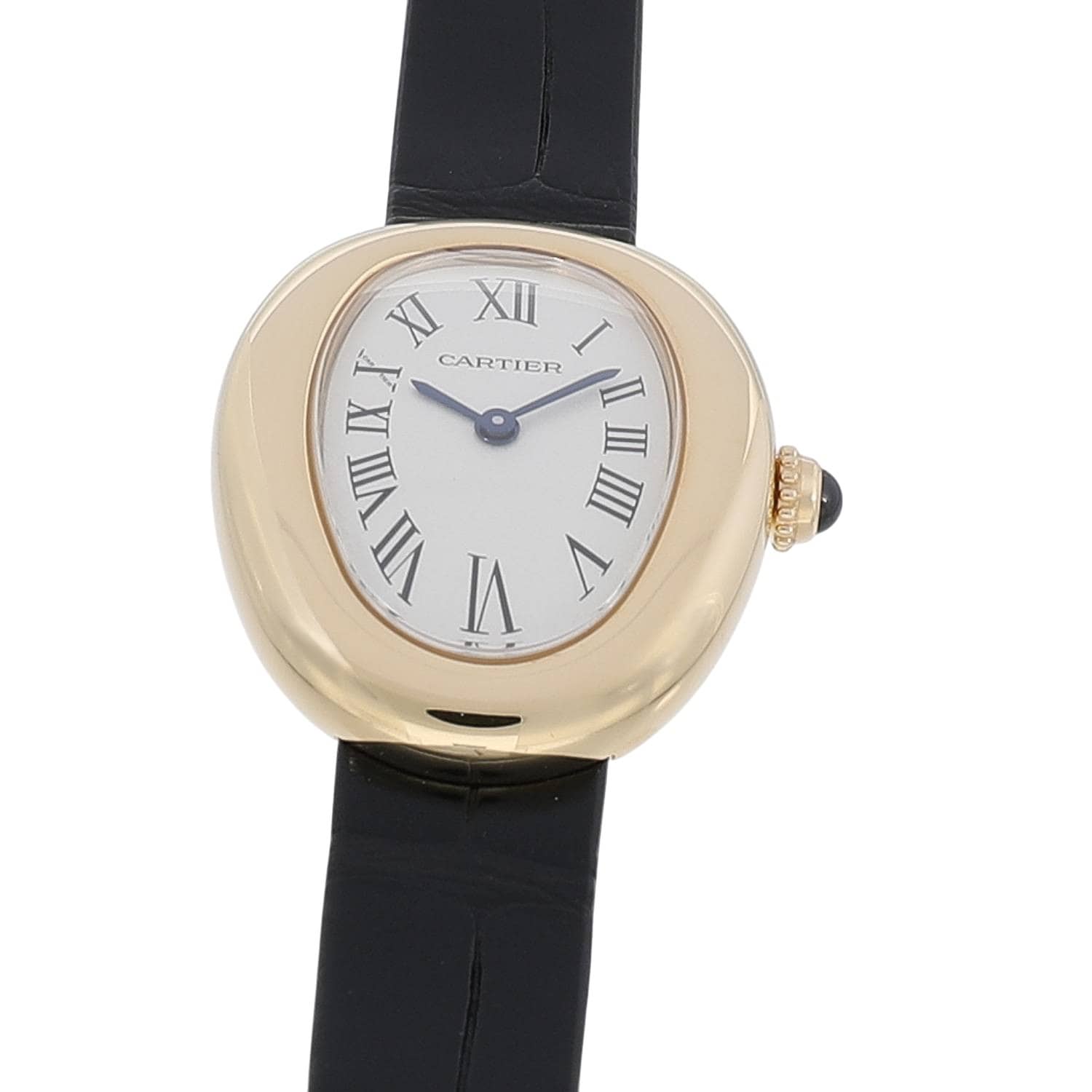 | モデルについて / Features | 1912年にオーバルケースのウォッチが誕生し、後の1958年にベニュワールの原型となるオーバル サントレが誕生します。王室御用達の宝石商であったカルティエが、1973年にロシアのマリア・パヴロヴナ公爵夫人へオーバル サントレを贈った際に『バスタブ(浴槽)みたいね!』との感想を受けて、フランス語でバスタブを意味するベニュワールと名づけられました。女性的な柔らかさを感じさせる直線の無い楕円形のケースは、気品の高さと優美なデザインが魅力のドレスウォッチです。好みに合わせてスモールやミニのサイズを選ぶ事が出来るもの魅力です。 |
