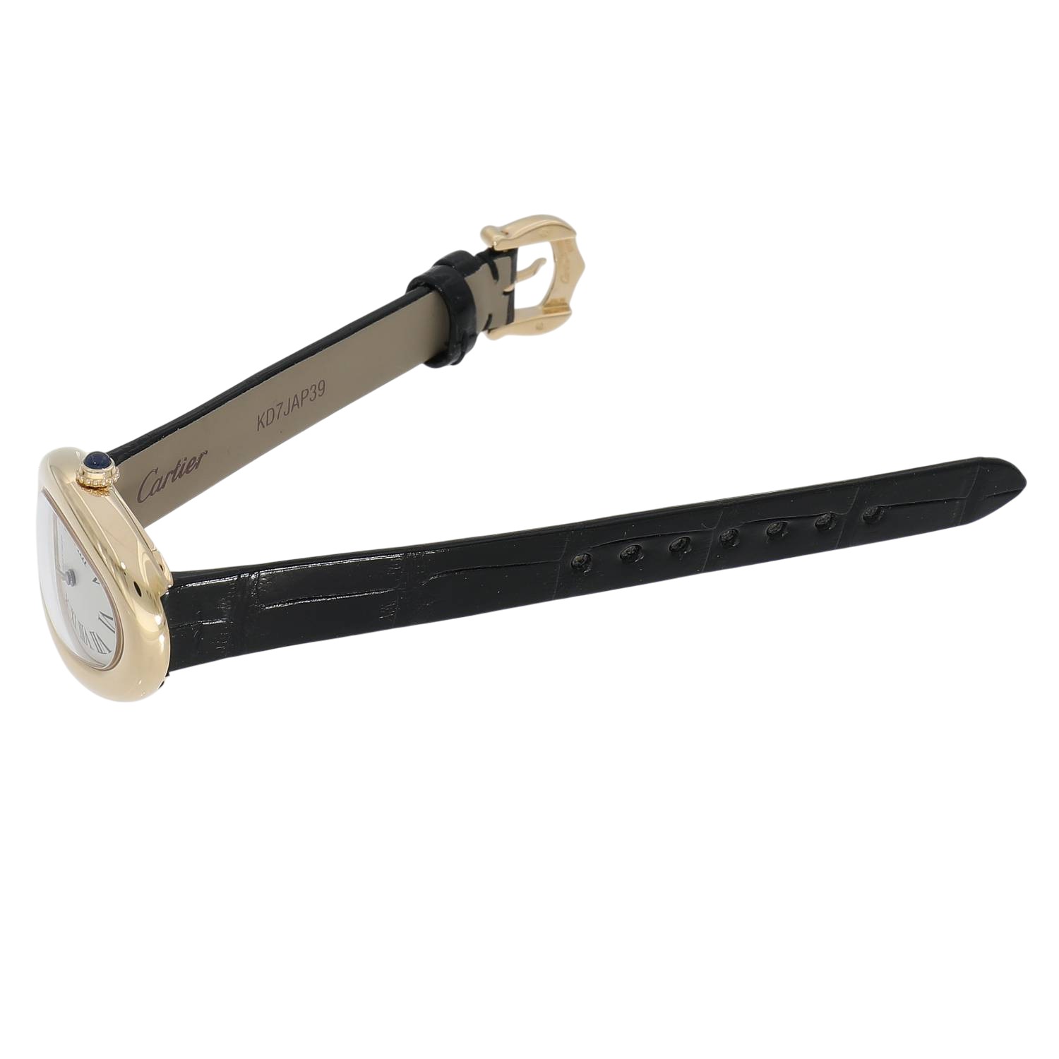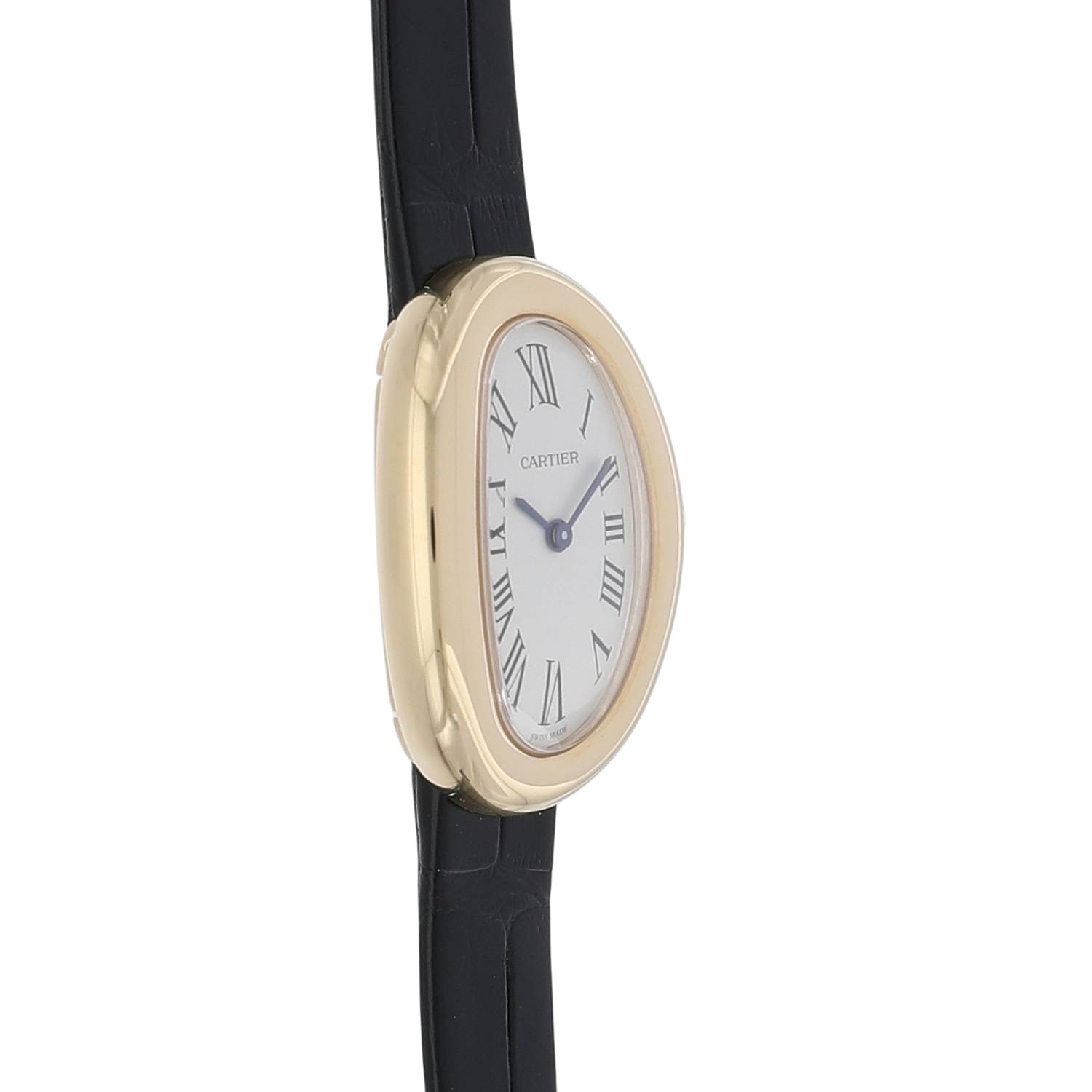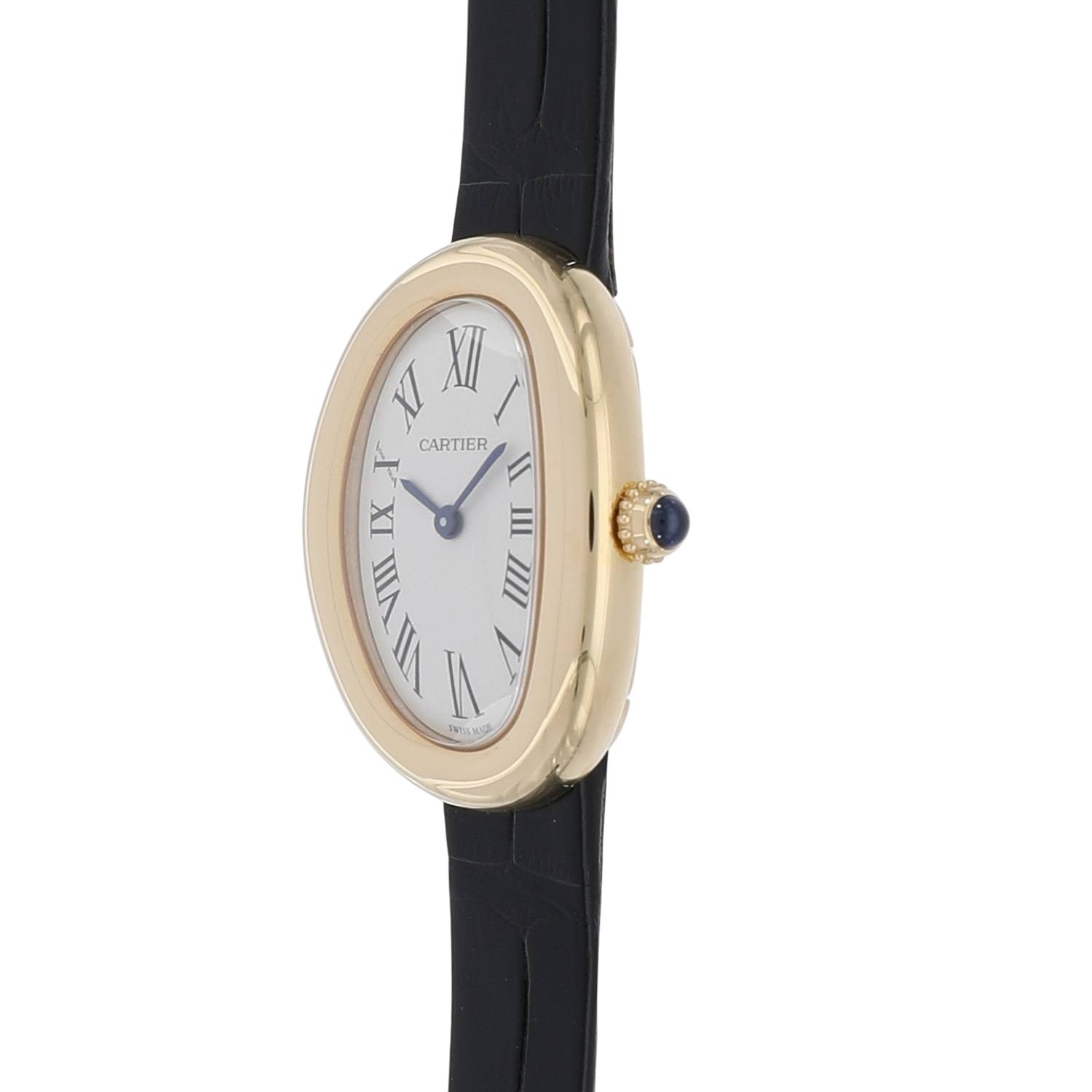 | モデルについて / Features | 1912年にオーバルケースのウォッチが誕生し、後の1958年にベニュワールの原型となるオーバル サントレが誕生します。王室御用達の宝石商であったカルティエが、1973年にロシアのマリア・パヴロヴナ公爵夫人へオーバル サントレを贈った際に『バスタブ(浴槽)みたいね!』との感想を受けて、フランス語でバスタブを意味するベニュワールと名づけられました。女性的な柔らかさを感じさせる直線の無い楕円形のケースは、気品の高さと優美なデザインが魅力のドレスウォッチです。好みに合わせてスモールやミニのサイズを選ぶ事が出来るもの魅力です。 |