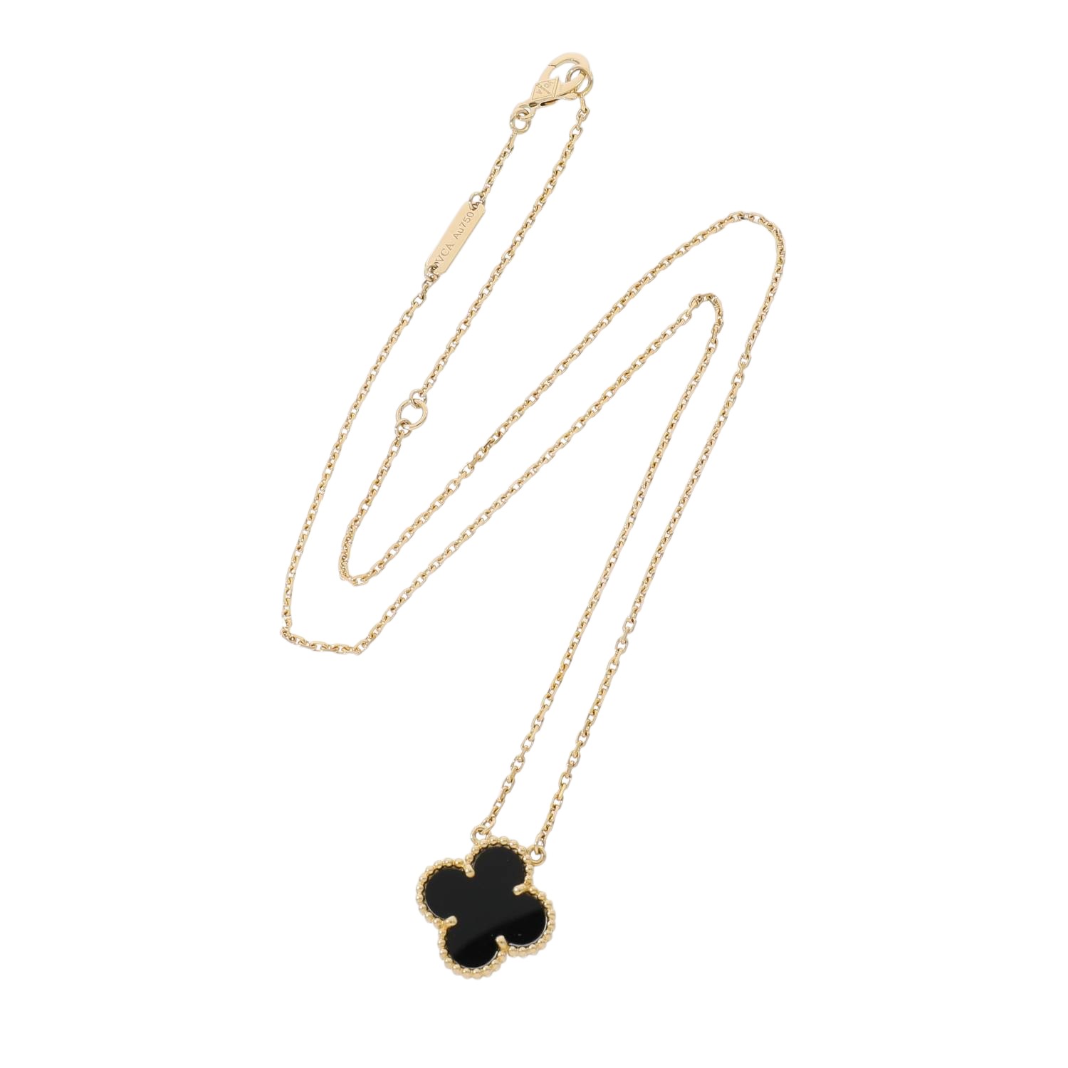 [中古]ヴァンクリーフ&アーペル ヴィンテージ アルハンブラ オニキス ペンダント ネックレス イエローゴールド VCARA45800