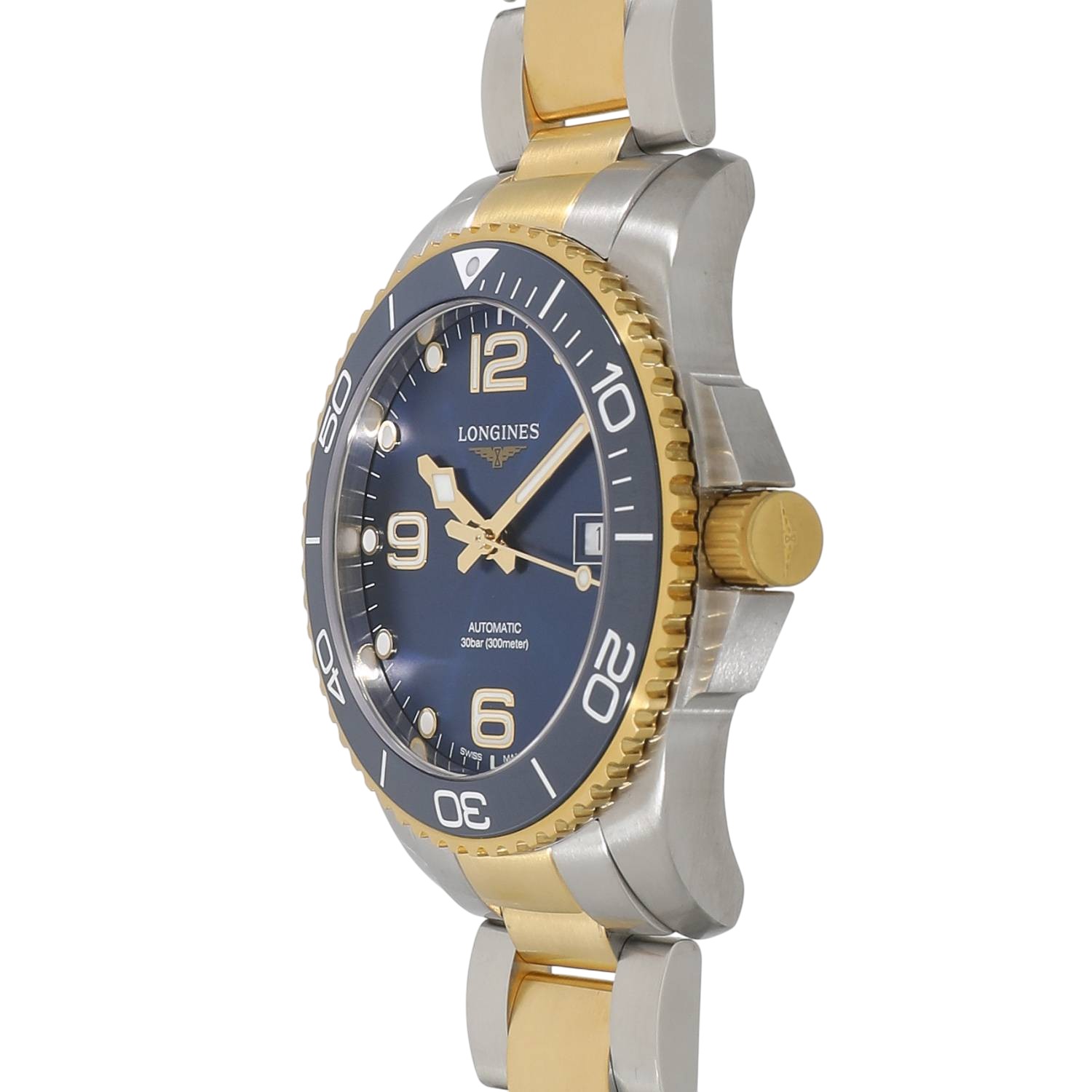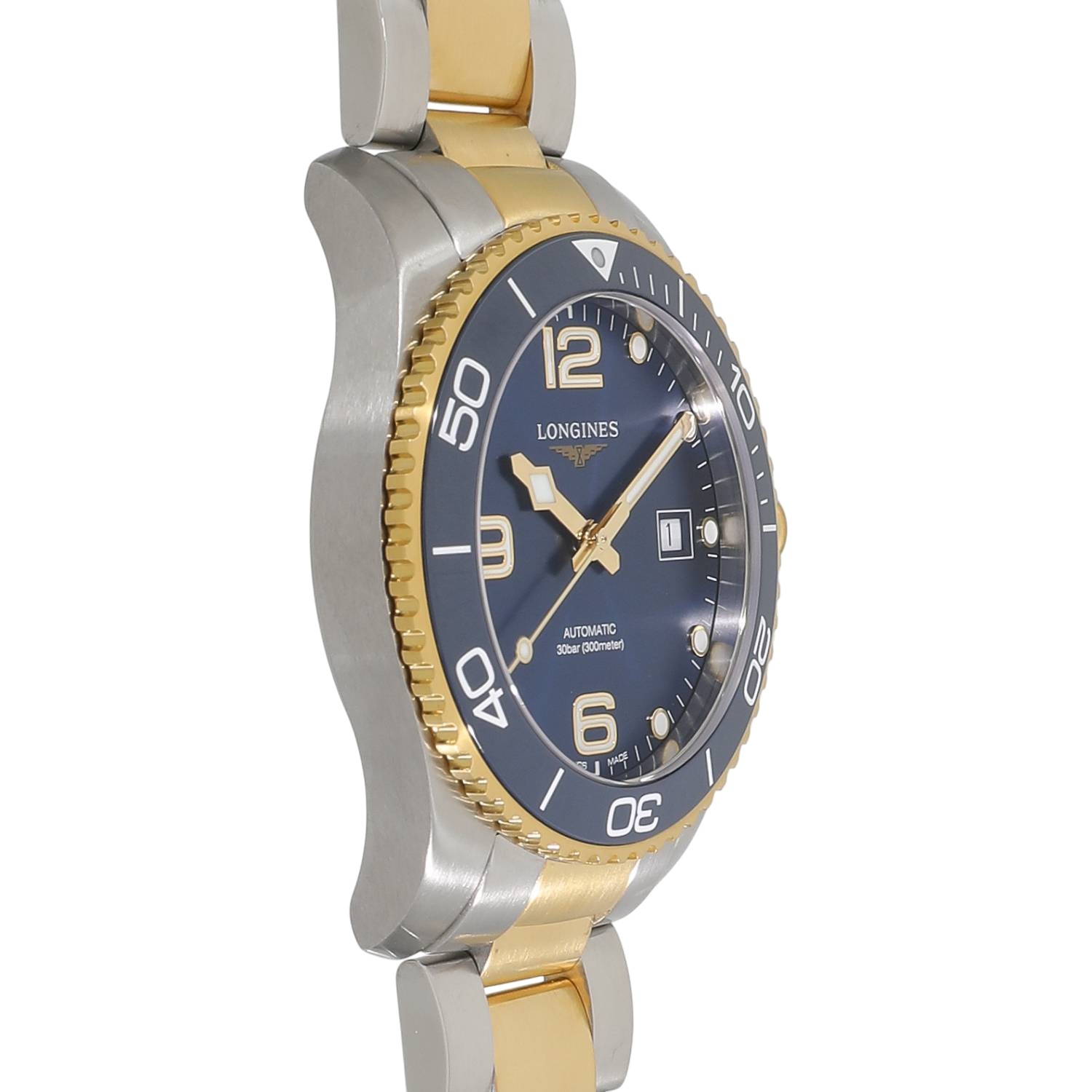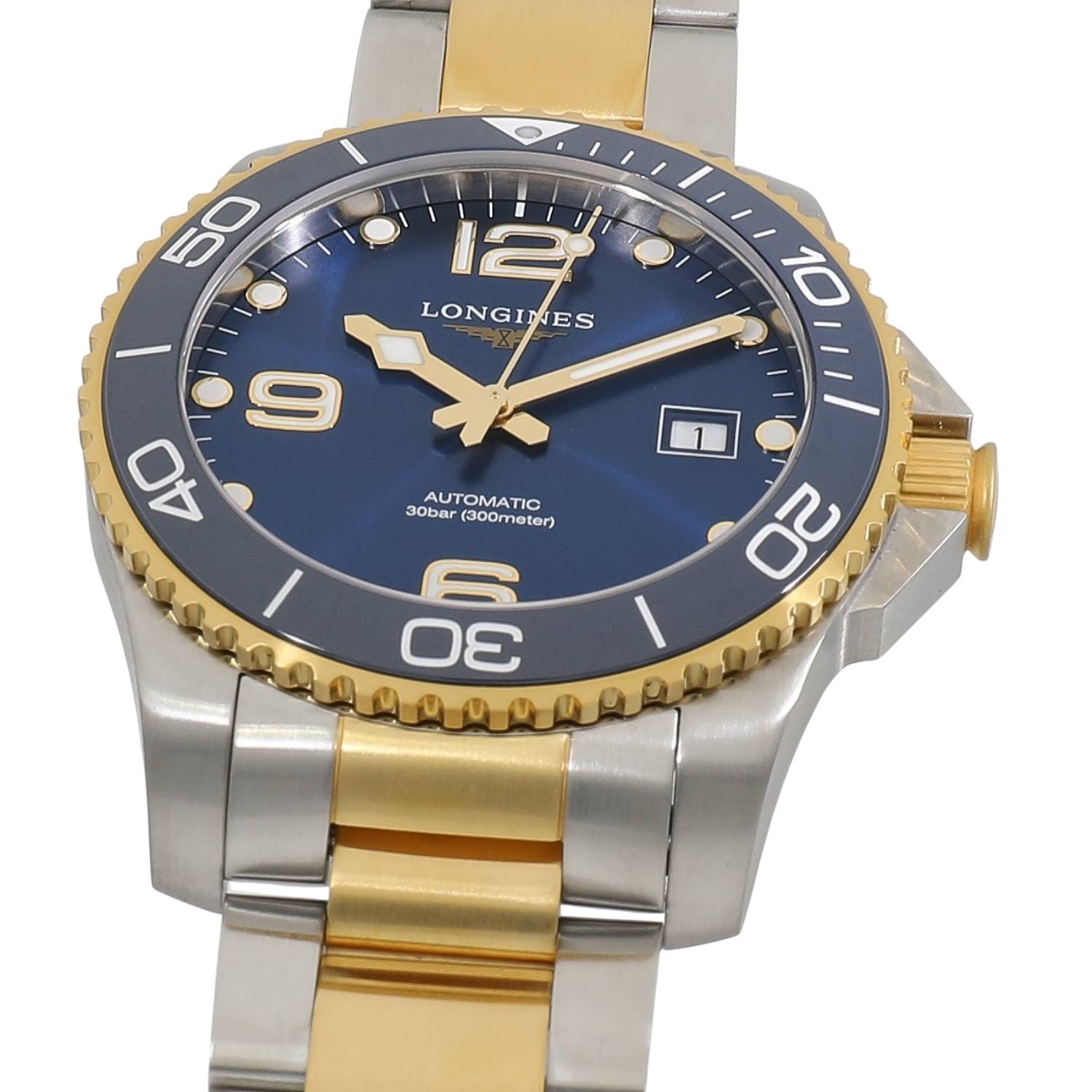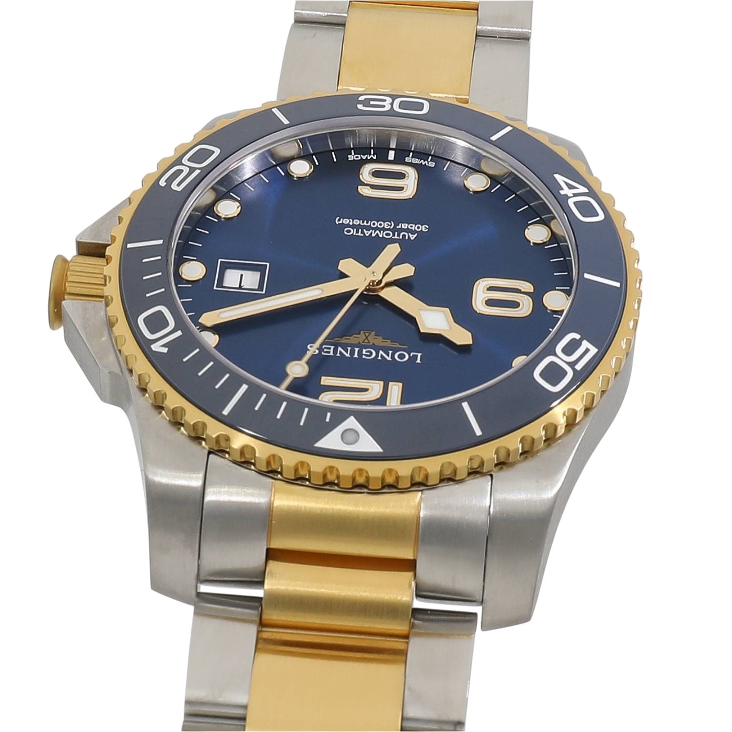| モデルについて / Features | 2021年の新作 ロンジンのダイバーズウォッチコレクションとなる、ハイドロコンクエストシリーズ。”ダイビングの世界に色彩豊かなパフォーマンスを”がコンセプト。300メートル防水に、艶やかなセラミック製のベゼルを採用しています。ブレスレットをはじめ、ベゼル外周とリューズにはイエローゴールドPVDが施されており、スタイリッシュでありながら高級感のある本格的なダイバーズウォッチに仕上がっています。 |