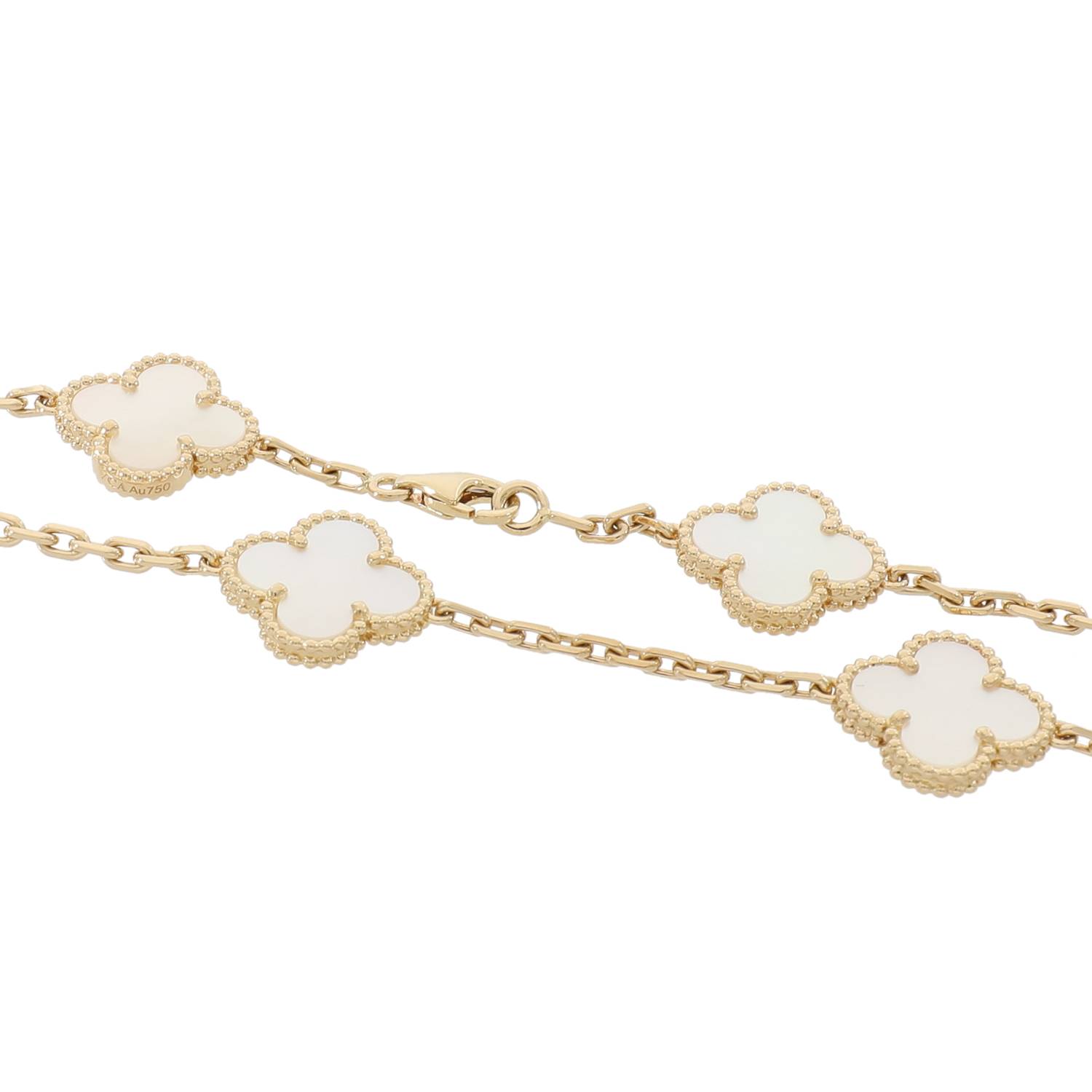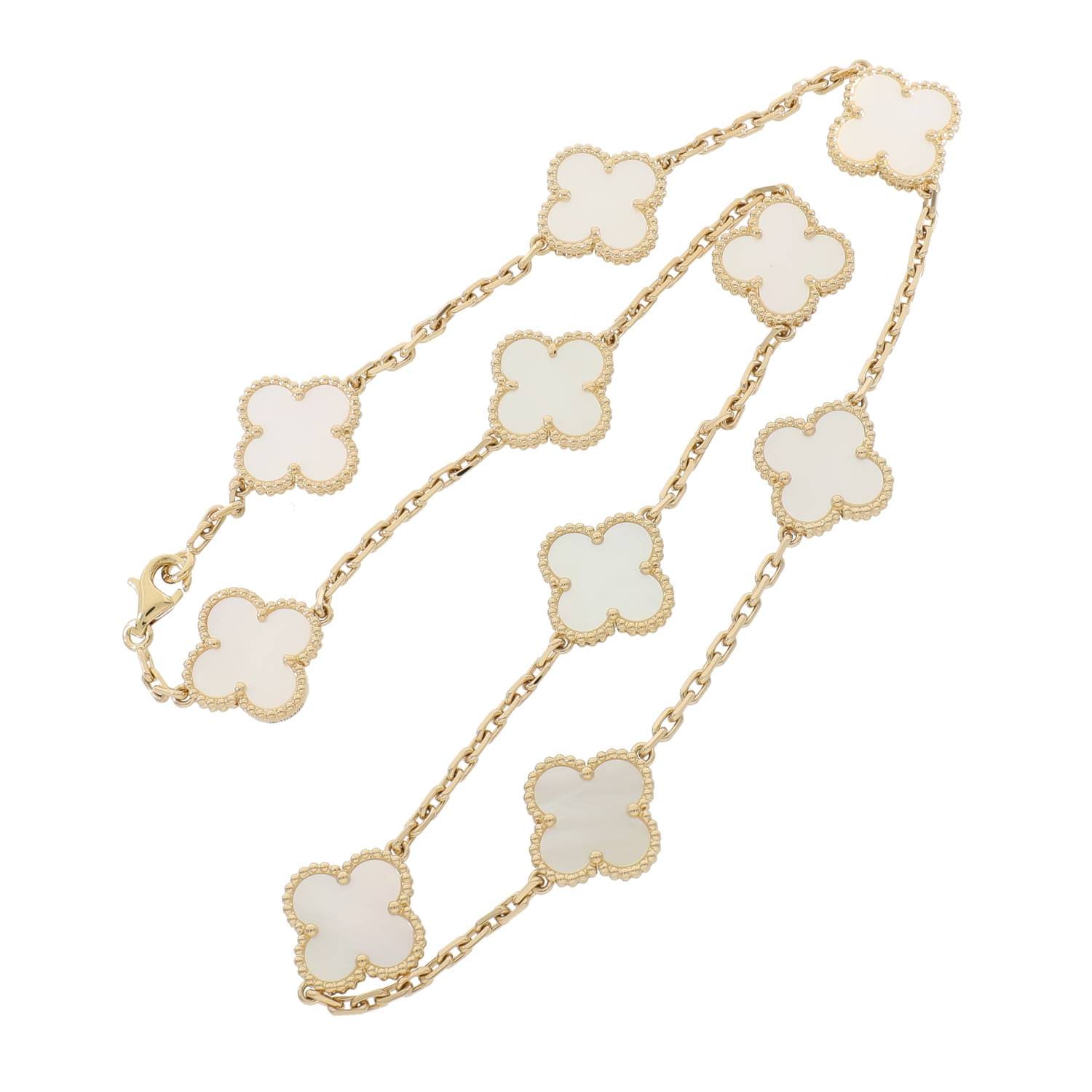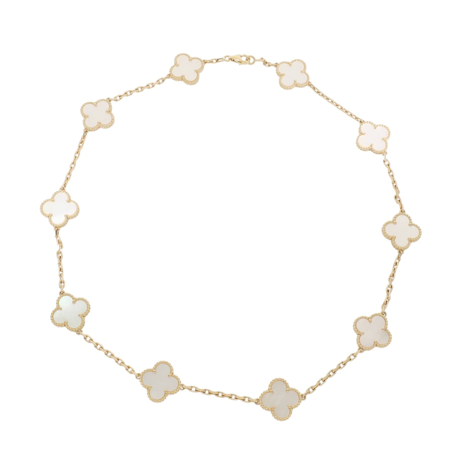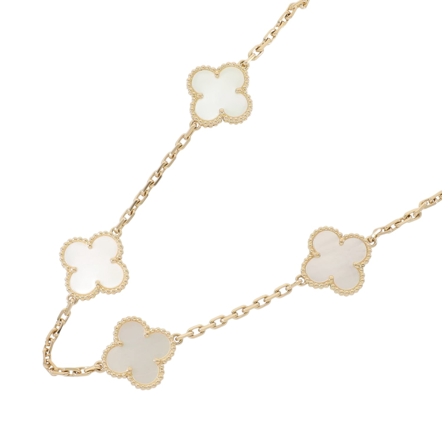 [中古]ヴァンクリーフ&アーペル ヴィンテージアルハンブラ 10モチーフ ホワイト マザーオブパール ネックレス イエローゴールド VCARA42800
