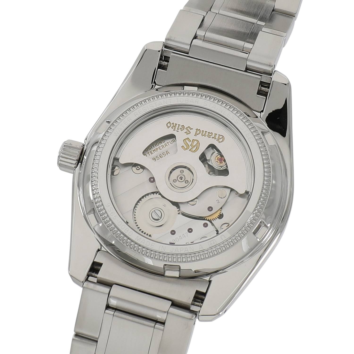 | モデルについて / Features | 日本を代表する高級ブランドであるグランドセイコーは1960年に初代モデルが誕生します。1993年には待望であった自動巻きムーブメントCal.9S55の開発に成功し、グランドセイコーとして久しぶりにメカニカルモデルが復活を遂げる事になります。メカニカルモデル復活の第1弾モデルとなったSBGR001を彷彿とさせるデザインです。ケースとブレスレットの素材には上質なステンレス、文字盤には全体を引き締めるブラックを採用しています。ムーブメントには9S65の後継機となる9S65を搭載しいています。パワーリザーブは約72時間、巻上方式をリバーサー方式、天心のホゾを0.1mm太くするなどの仕様変更を行い、Cal.9S55に比べ耐久性や巻上効率が見直され実用性が格段に向上しました。 |